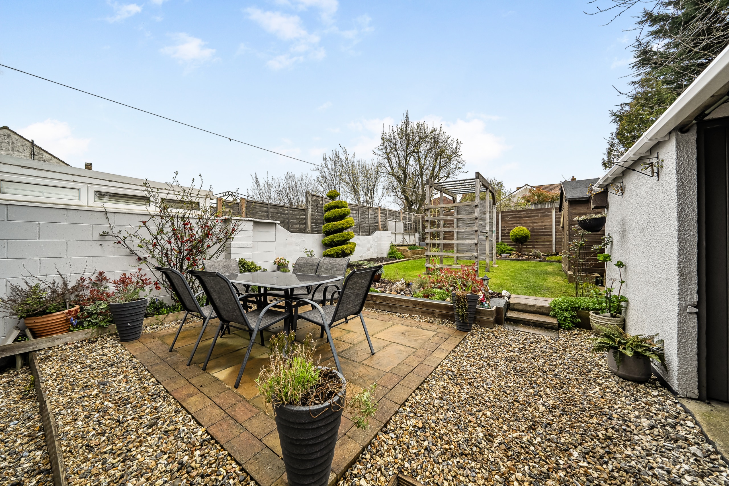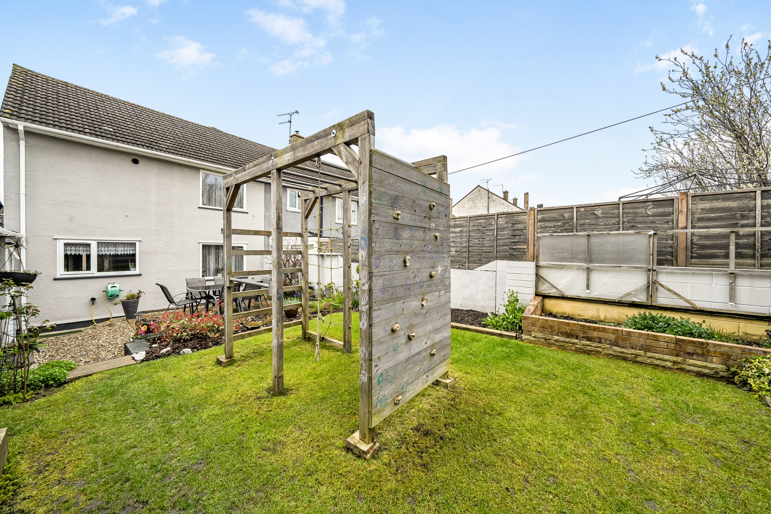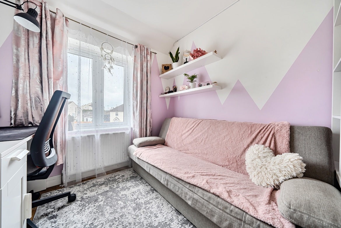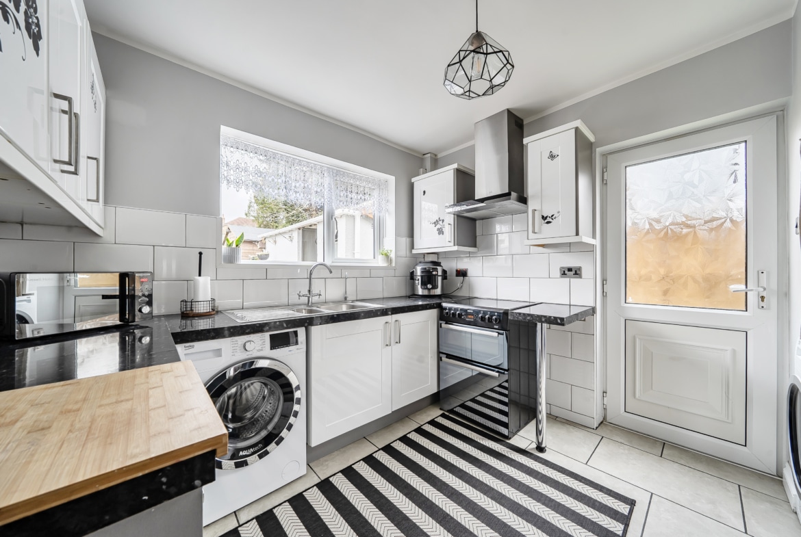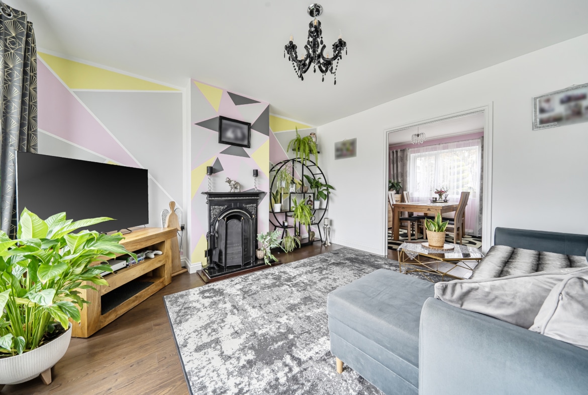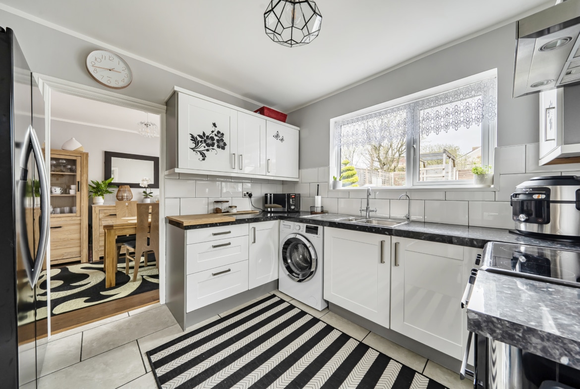 The property offers a really practical layout. You’re welcomed by a spacious entrance hall which leads through to a generous lounge, opening into a separate dining area and then onto the kitchen. The kitchen is also accessible from the hallway and has a side door out to the garden, where the current owners have added a lean-to -useful for additional storage or keeping things sheltered.