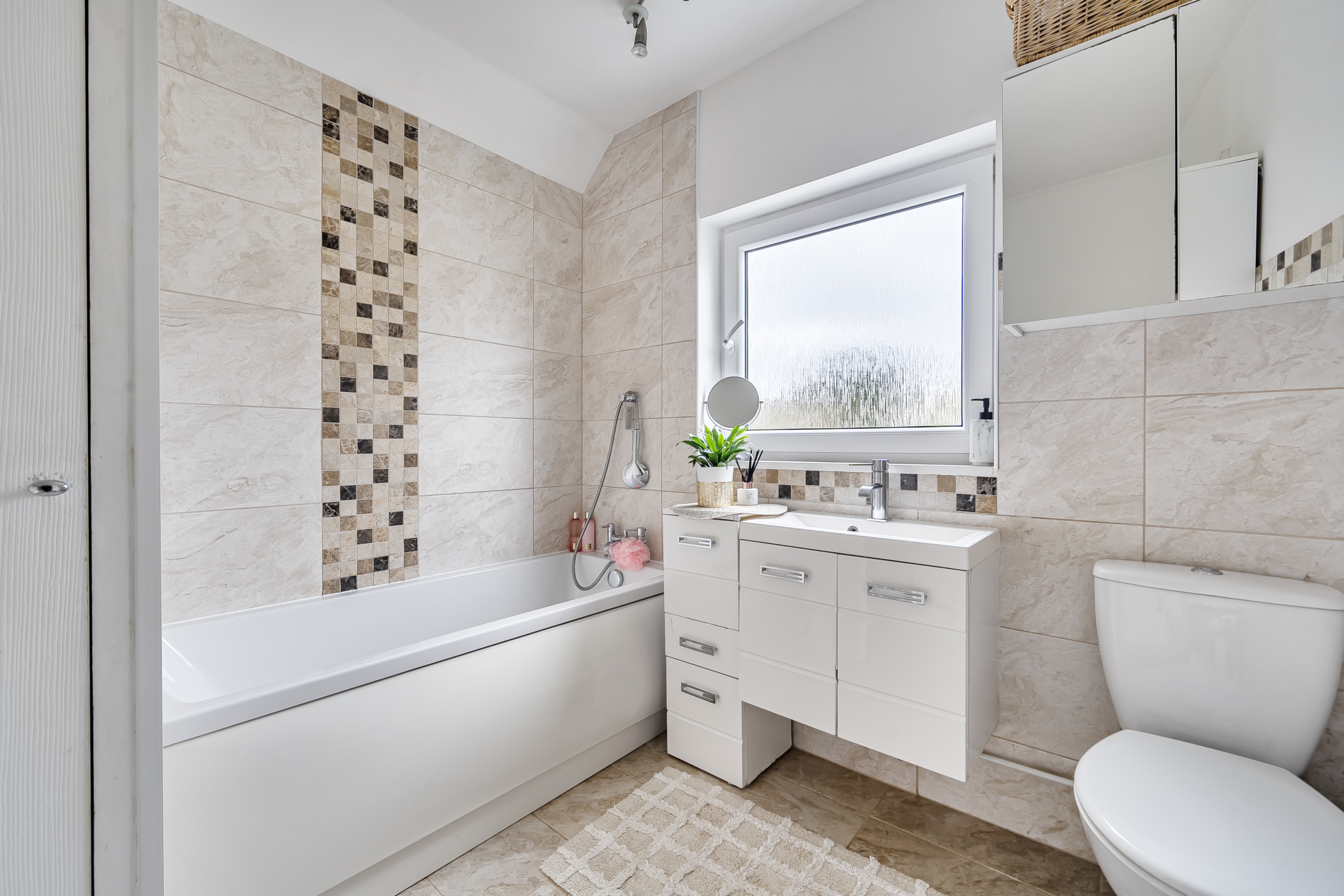Upstairs, there are three bedrooms, including two good sized doubles with built in wardrobes, along with a single bedroom that would also work well as a home office. The family bathroom is well kept and in keeping with the rest of the house.