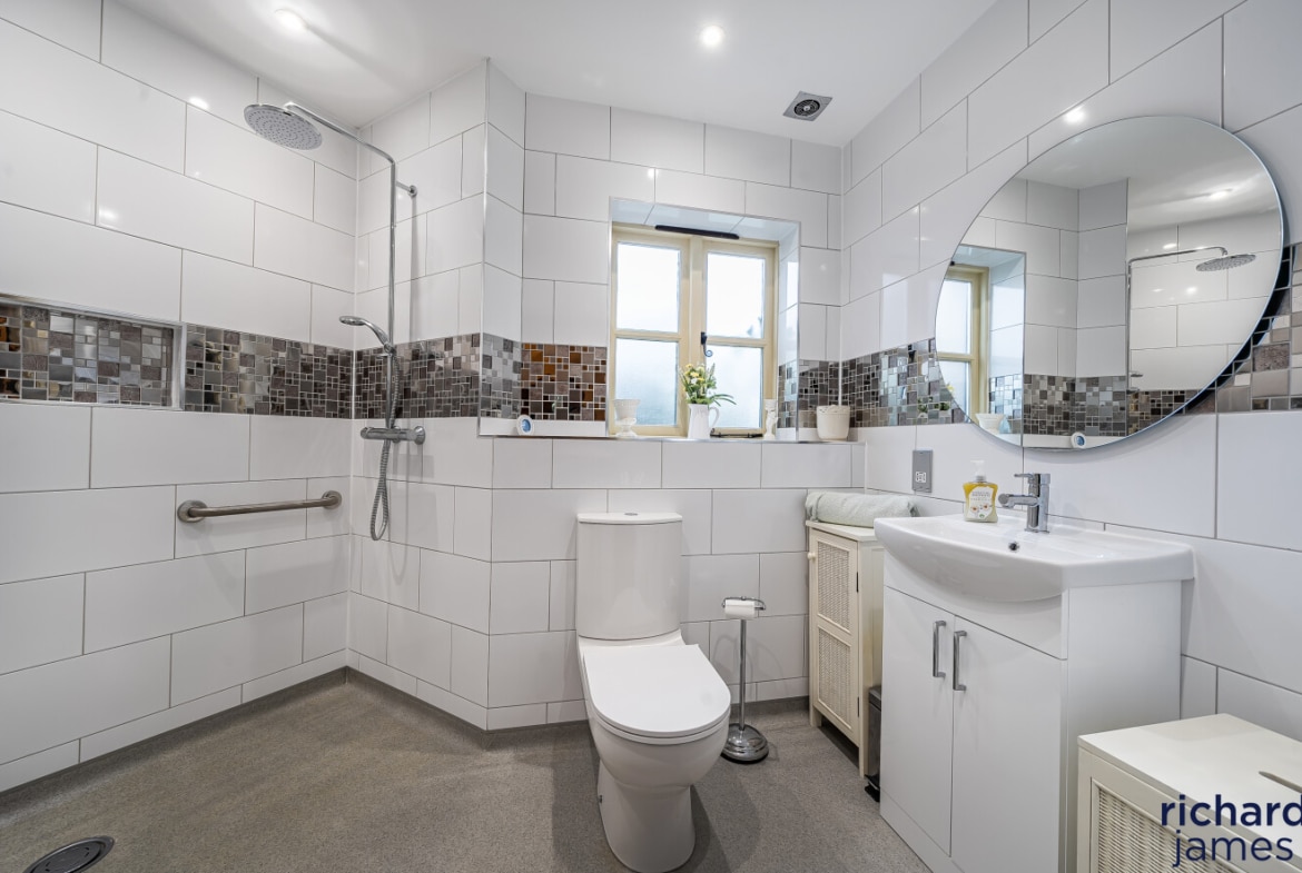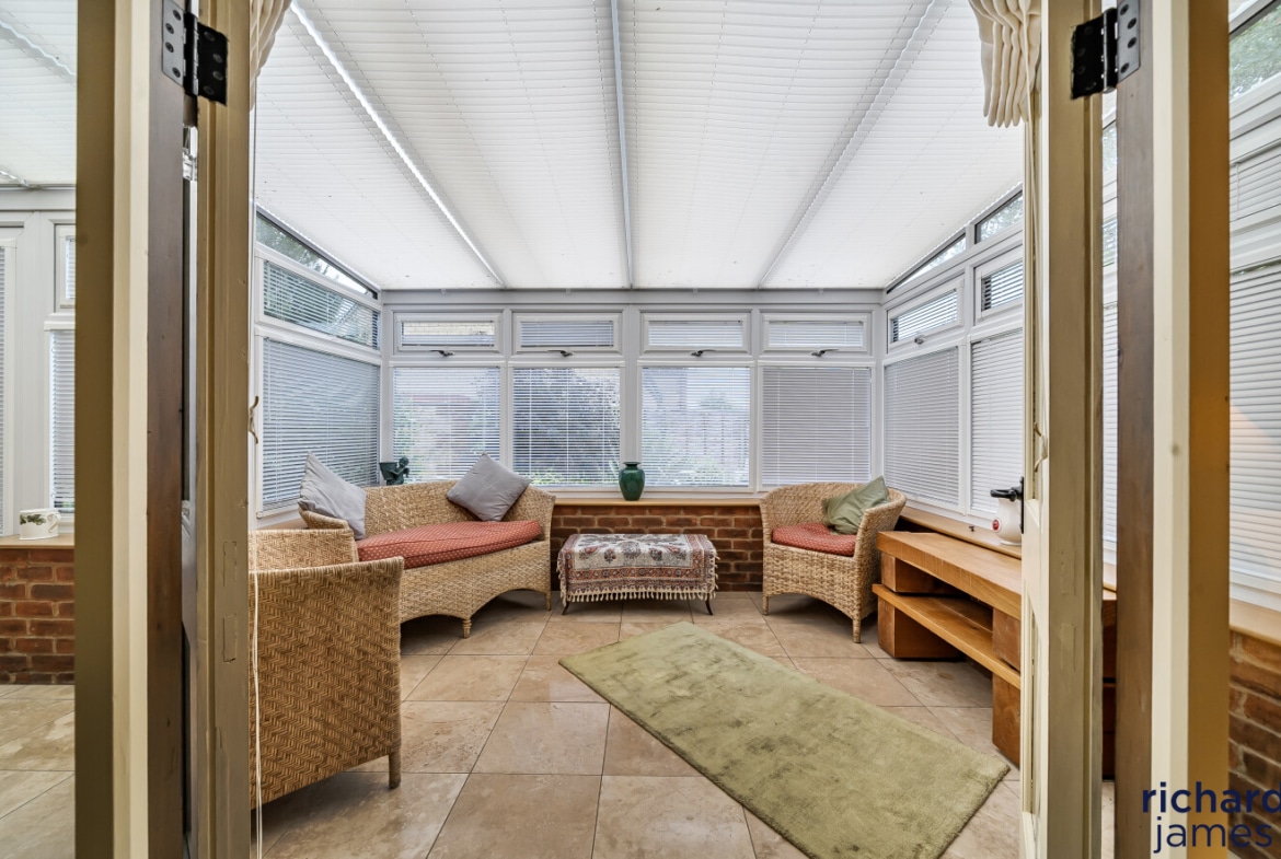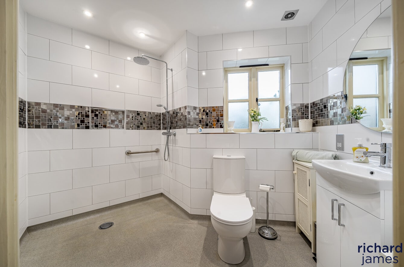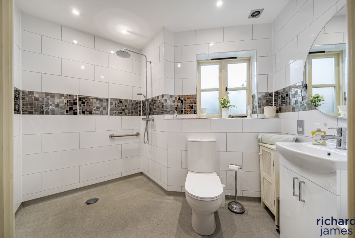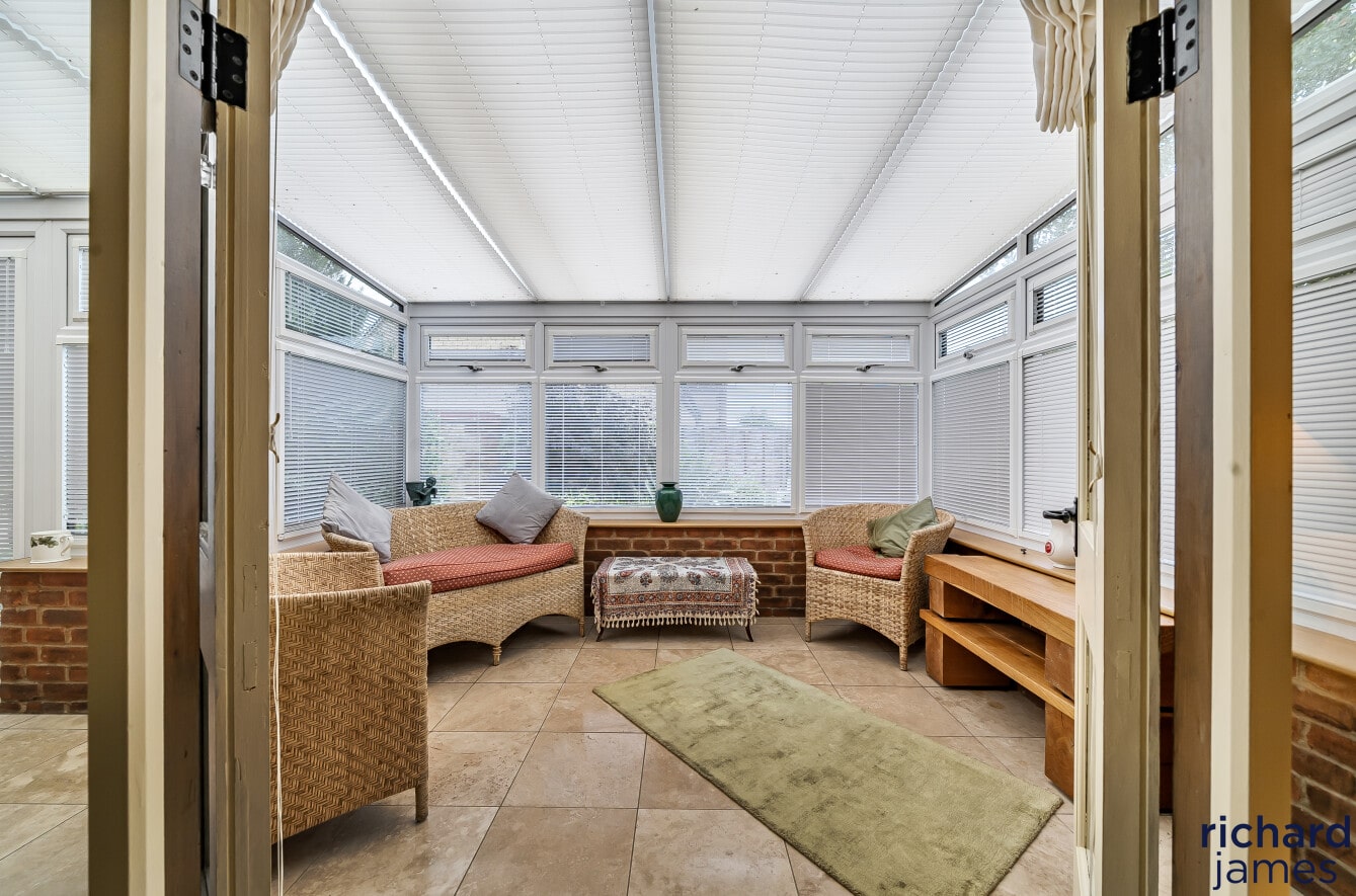 A beautiful conservatory extends seamlessly from the living area, offering views over the private garden—an ideal spot to relax and enjoy the tranquil surroundings. Beyond the conservatory, you’ll find the fully equipped kitchen and dining room, providing a perfect space for cooking and entertaining.