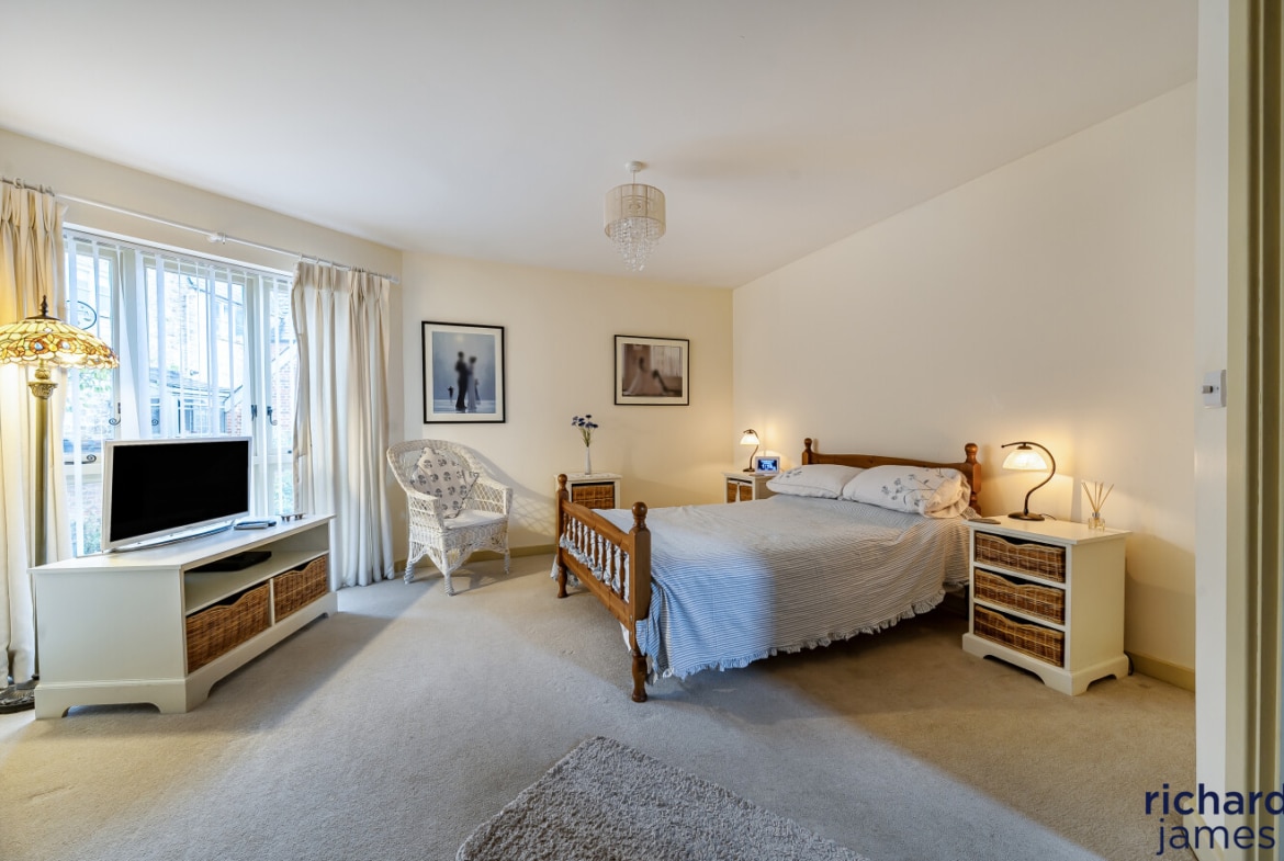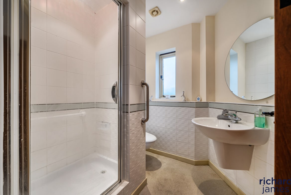 The property boasts two generous double bedrooms, each flooded with light and featuring built-in wardrobes. The master bedroom benefits from an en-suite shower room, while a newly fitted family bathroom, complete with a walk-in shower, serves the rest of the home.
