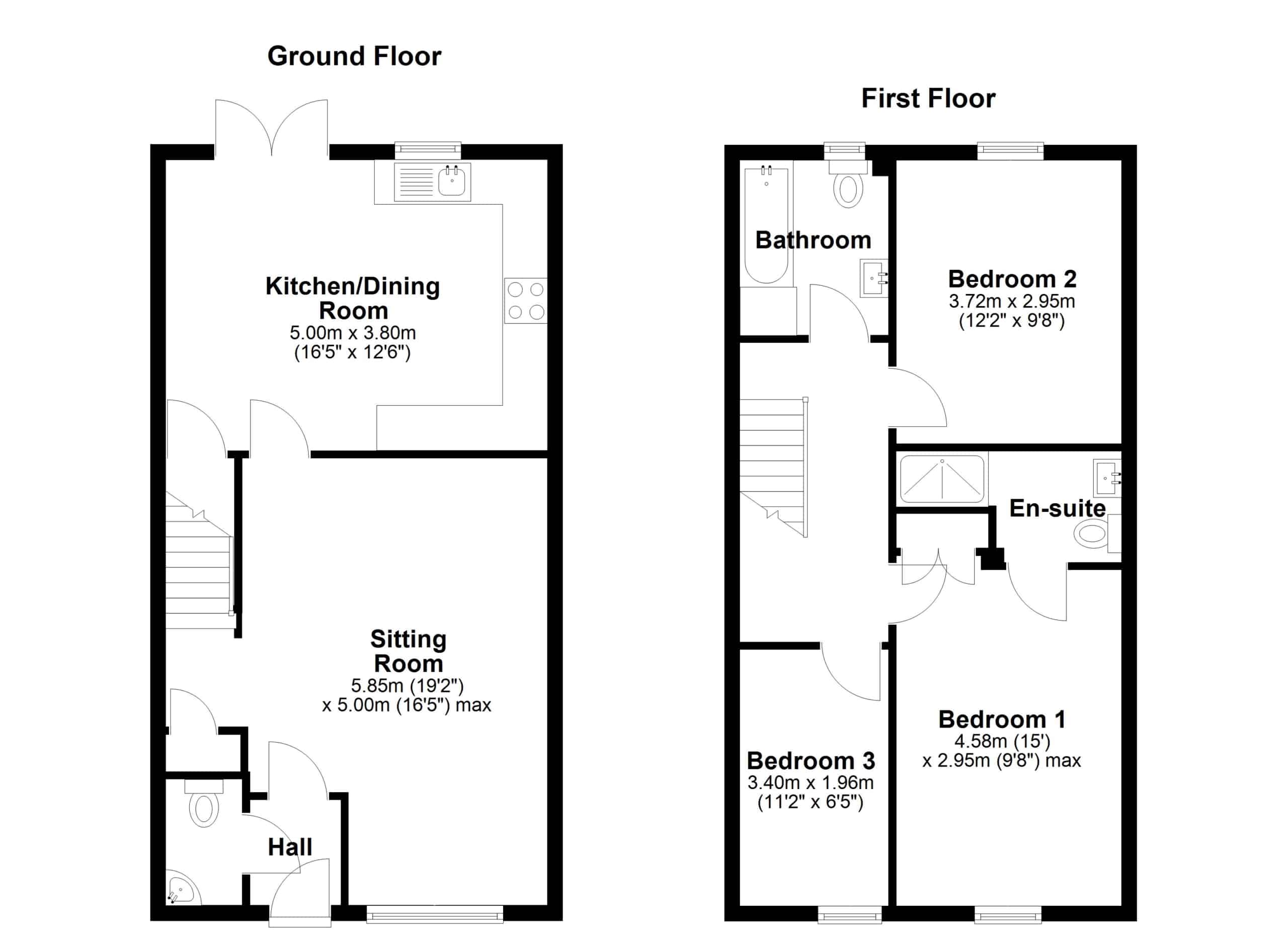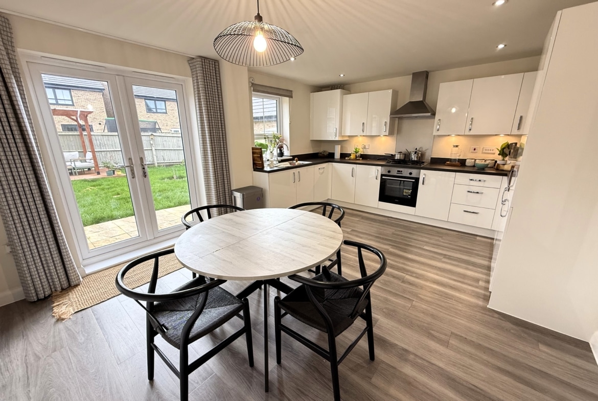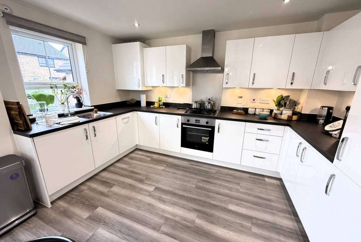 The well appointed accommodation comprises; Entrance Hall, Cloakroom, a generous 19′ Sitting Room and the superb 16′ fitted Kitchen/Dining Room, with integrated appliances and PVCu double patio doors, opening into the Rear Garden. The first floor offers; three good sized Bedrooms, including 15′ Bedroom One with built-in wardrobes and Ensuite Shower Room, plus the Family Bathroom, with modern white suite.