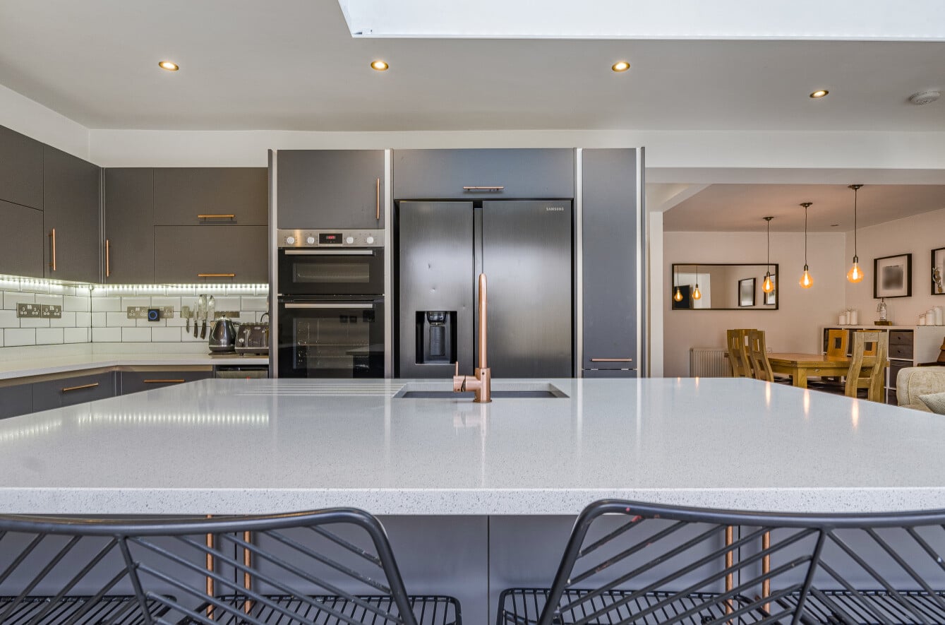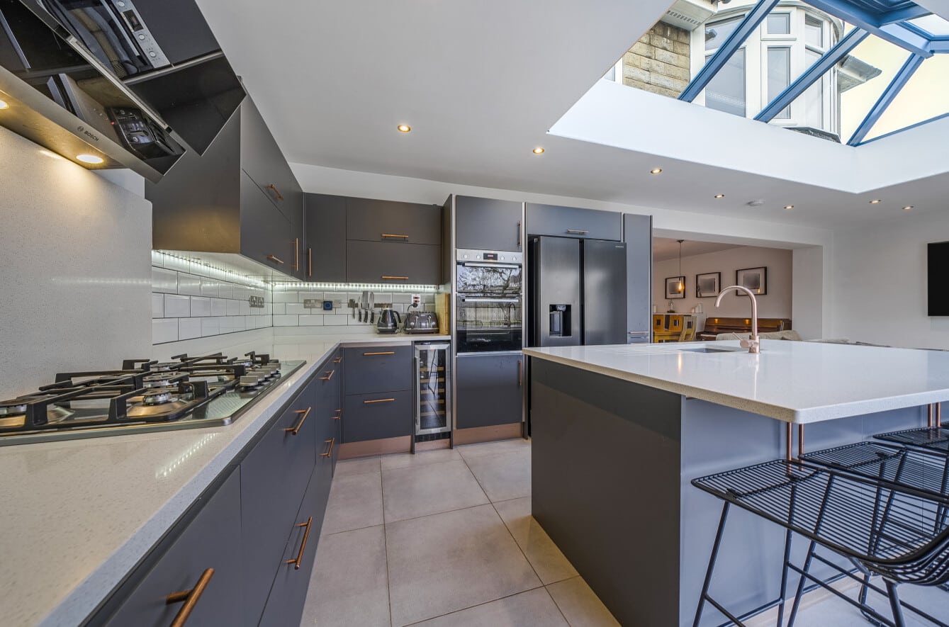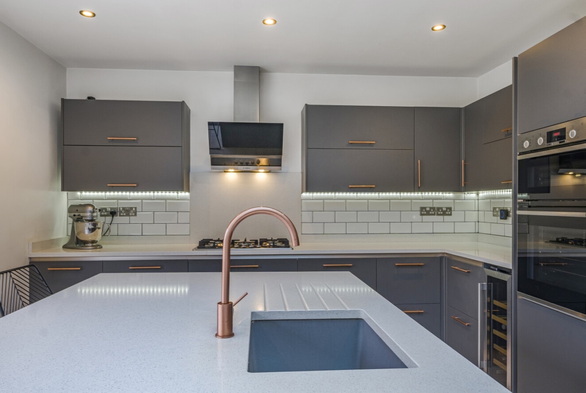 This double bay fronted, character home, has been thoughtfully extended to provide ample living space for all the family to enjoy. The well appointed accommodation includes: Hall with useful storage system, Sitting Room with bay window and inset log burner, modern Cloakroom and the superb 25′ x 24′ max refitted Kitchen/Dining/Family Room, which enjoys under floor heating, lantern roof, as well as an extensively refitted Kitchen with integrated Bosch appliances, island unit and bi-fold doors opening into the landscaped Rear Garden. As well as, a generous sized refitted Utility Room and door into the Garage. To the first floor, you’ll find the Four Bedrooms with refitted Ensuite Shower Room to Bedroom One and a further refitted Family Bathroom, with four piece suite, to the first floor.