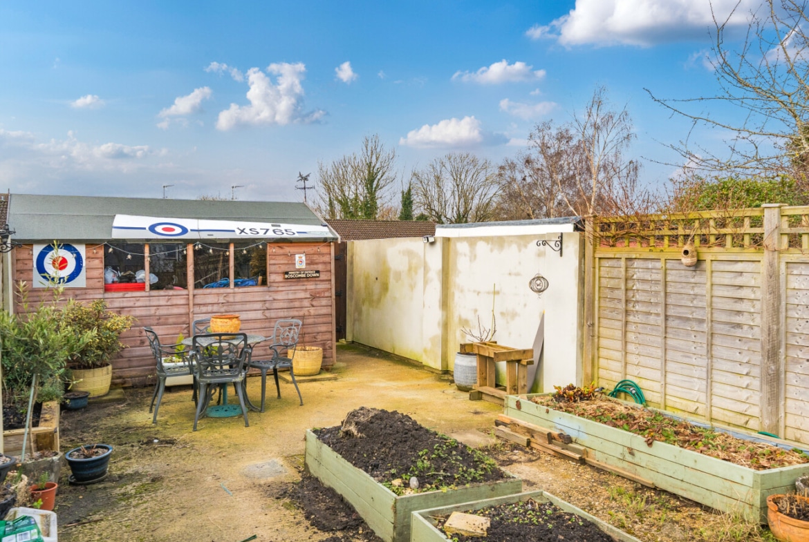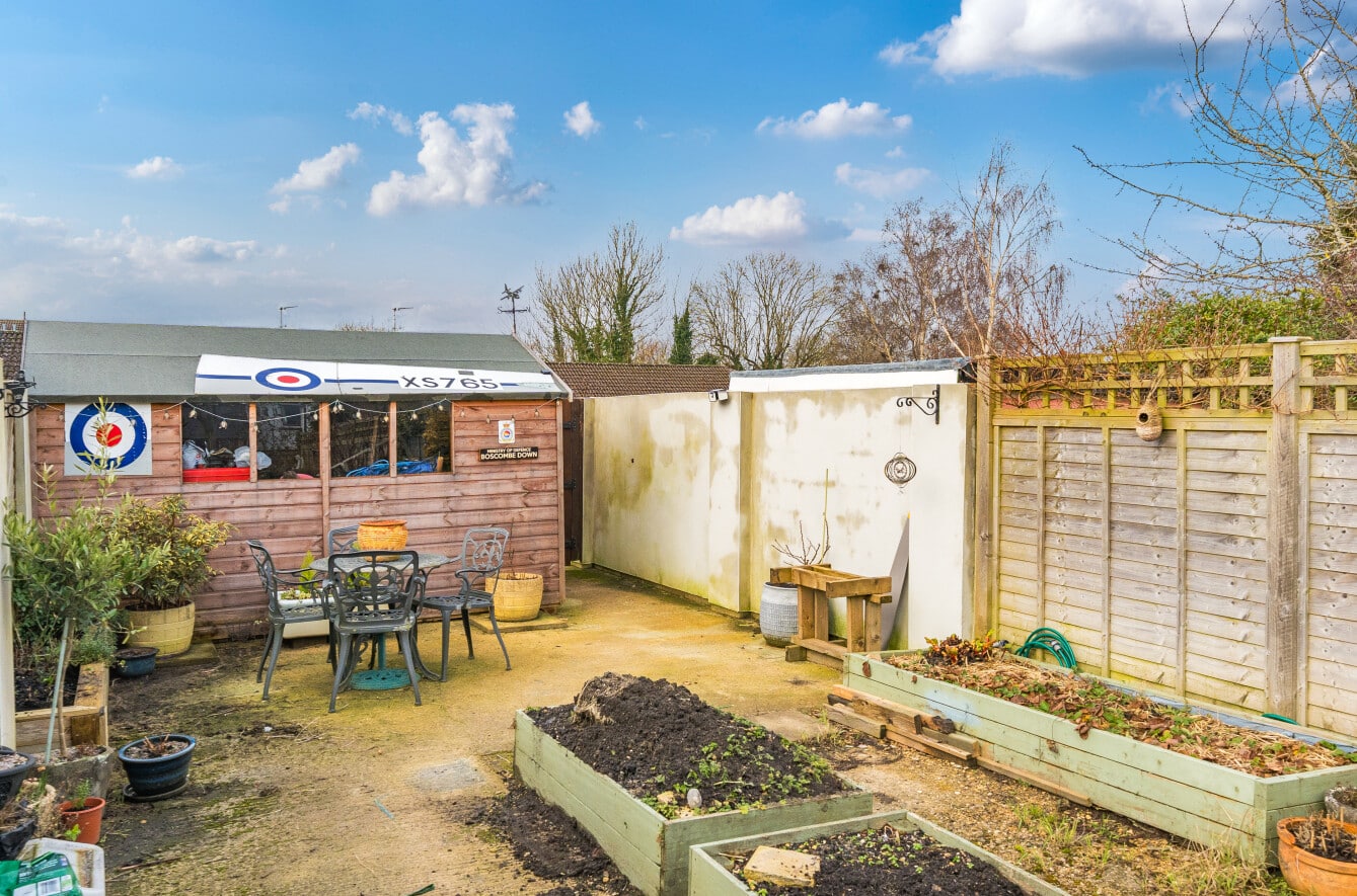 The rear garden is a great size and offers a private aspect, with both patio and lawn areas, as well as further area to the rear which could be a vegetable plot and large shed. With gated access leading to the off road parking area, suitable for circa. six vehicles.