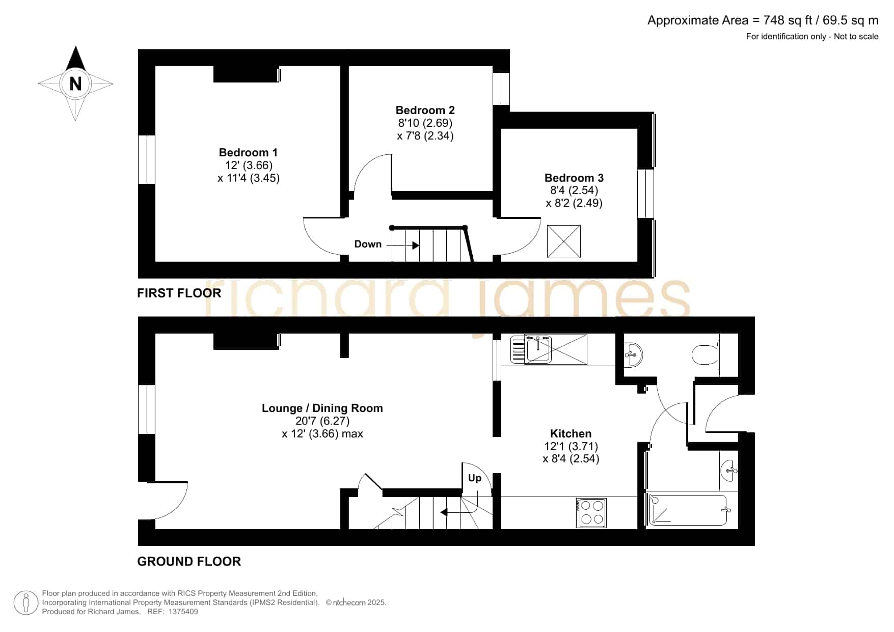 The ground floor features a spacious lounge/dining room complete with a fireplace and character beams, adding warmth and traditional charm to the living space. The kitchen, positioned at the back leads through to a ground-floor bathroom and separate WC.