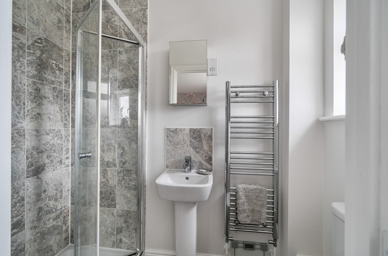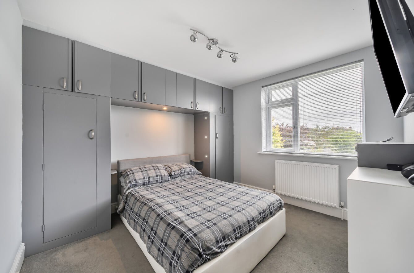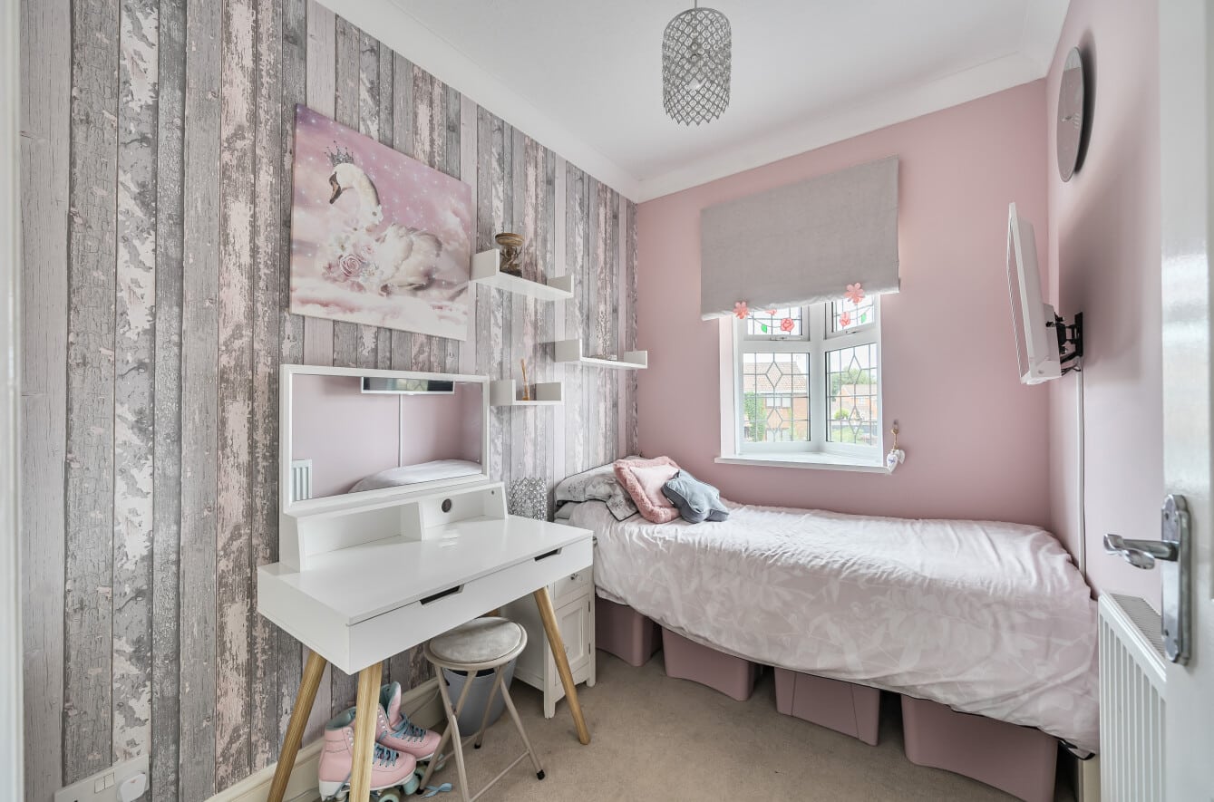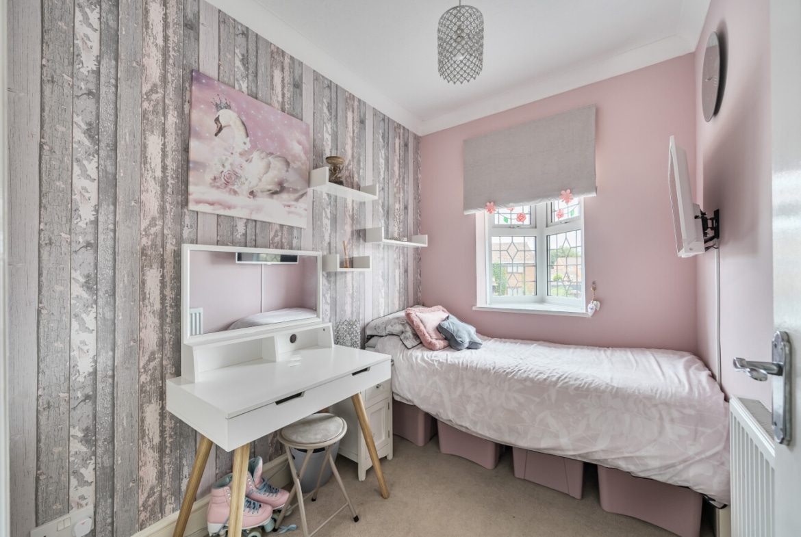 The extension has created an exceptional upstairs footprint, allowing for five generous bedrooms. The principal bedroom offers garden views, built-in wardrobes, and a stylish en-suite. A second large bay-fronted bedroom overlooks the front, while the third double enjoys views of the garden. The fifth bedroom features a charming, characterful window, and the fourth bedroom—currently set up as two separate areas with a stud wall—can easily be returned to a single, spacious room. The luxurious family bathroom boasts a roll-top bath and a separate shower.