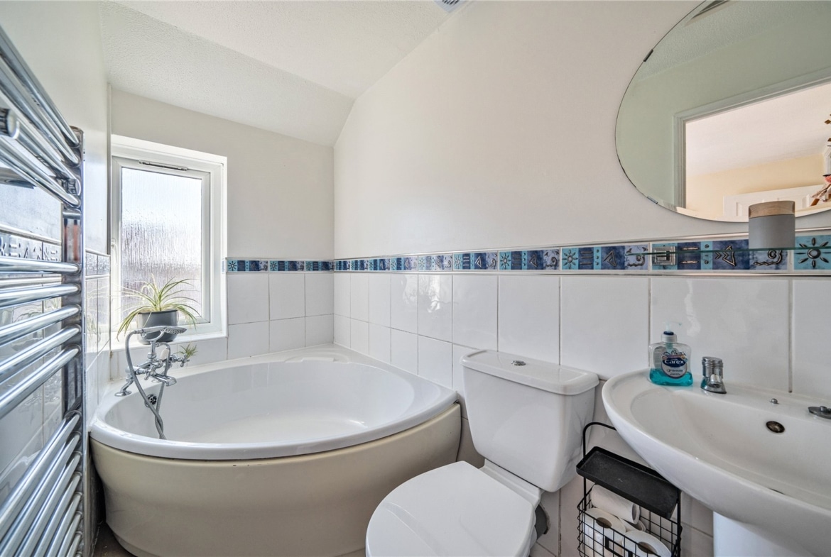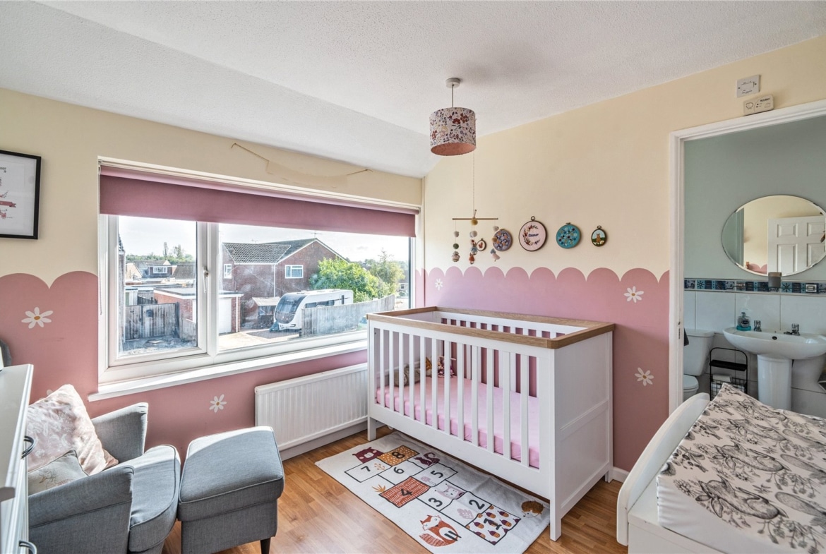Upstairs you’ll find the bright main bedroom which gets plenty of natural light and good sized second bedroom with ensuite bathroom.