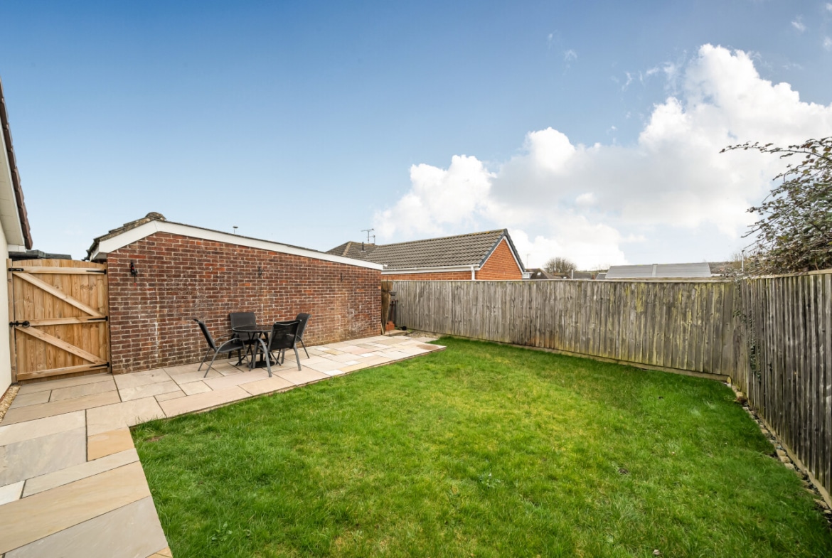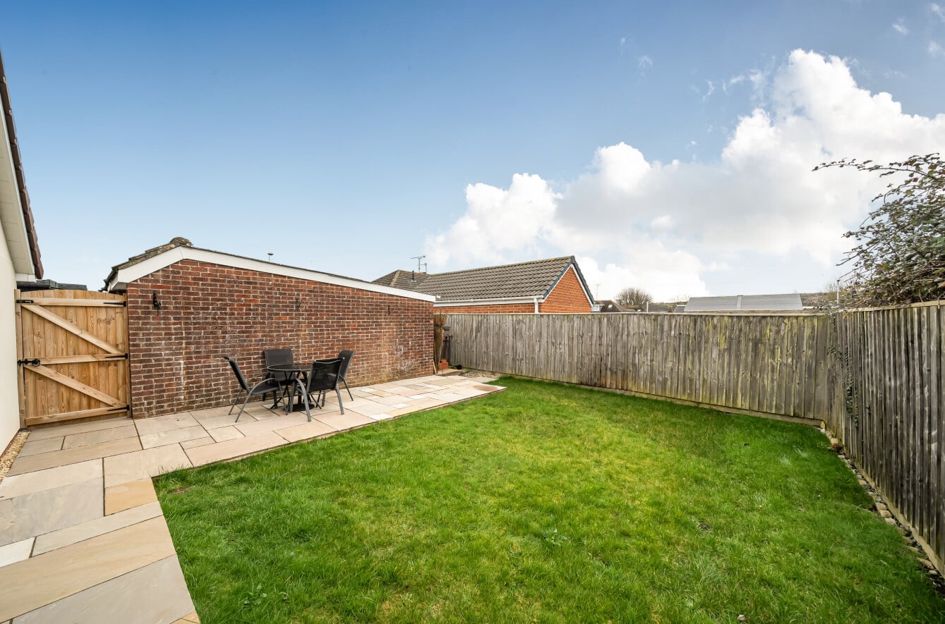 Externally, the property continues to impress. To the rear is a private, enclosed garden laid predominantly to lawn with a patio seating area – ideal for summer dining and low-maintenance enjoyment. To the front, a generous driveway provides ample off-road parking and leads to a detached garage, offering further storage or workshop potential.