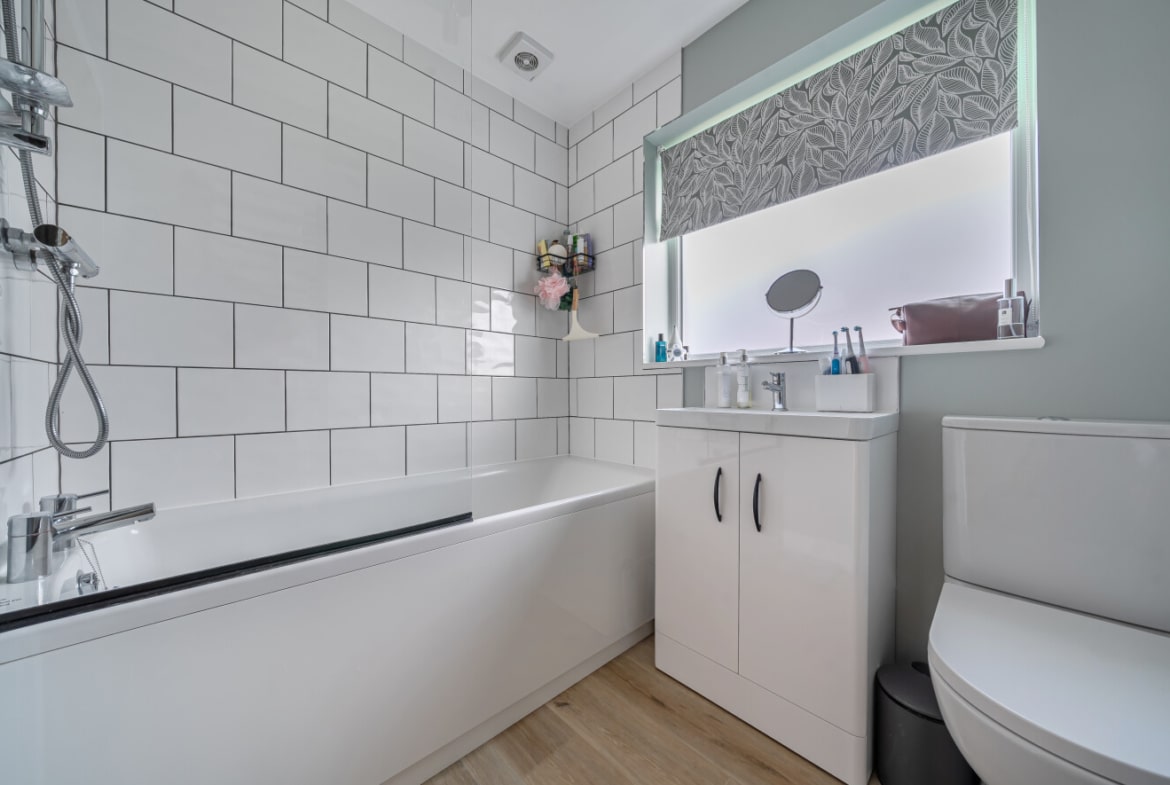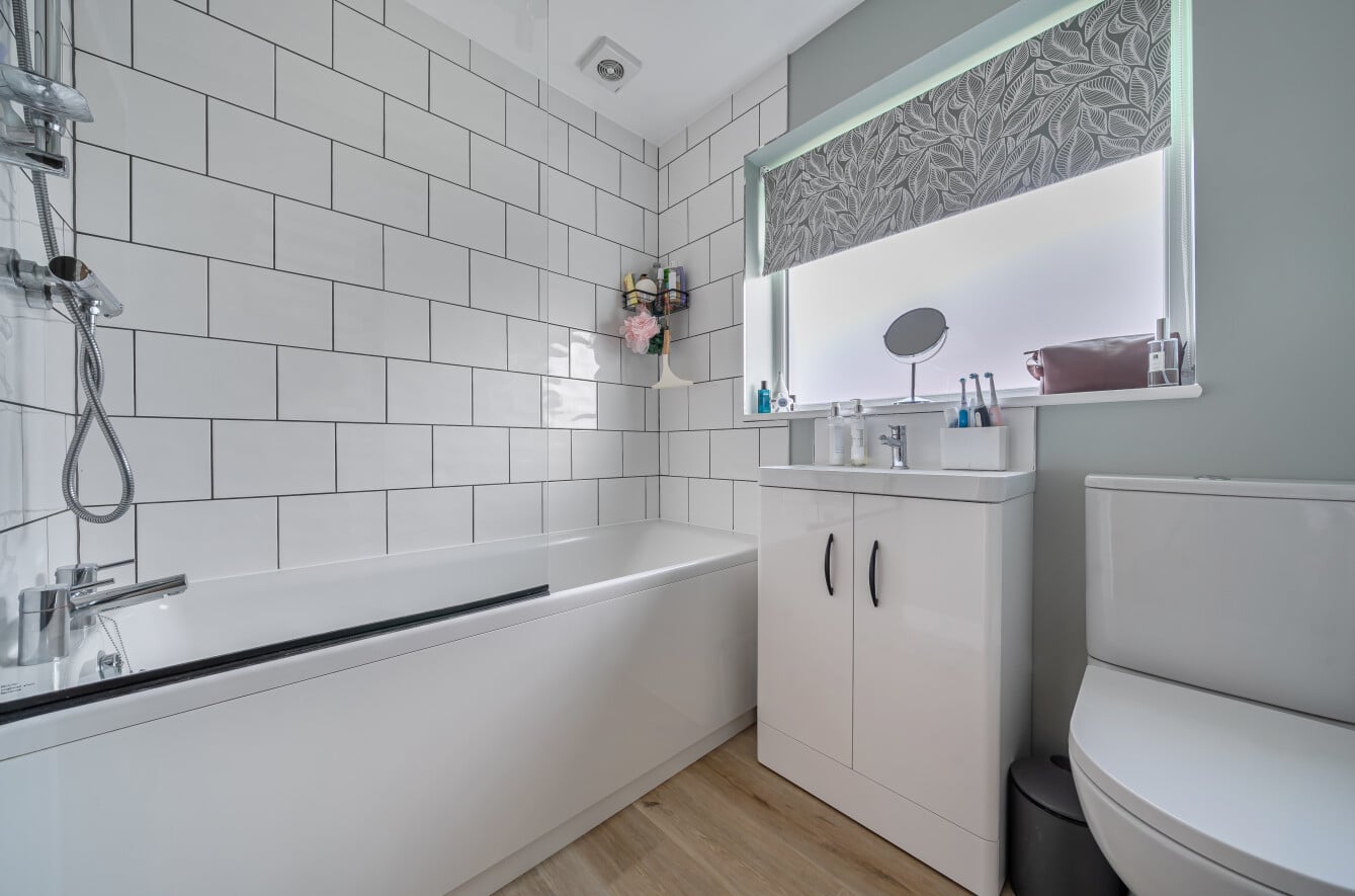 The separate reception room provides a cosy yet generous space to unwind, while the layout offers three well-proportioned bedrooms. The principal bedroom is particularly impressive in size, with further versatile rooms ideal for children, guests or those working from home. The family bathroom has been stylishly refitted with modern tiling and contemporary sanitaryware, in keeping with the high standard seen throughout.