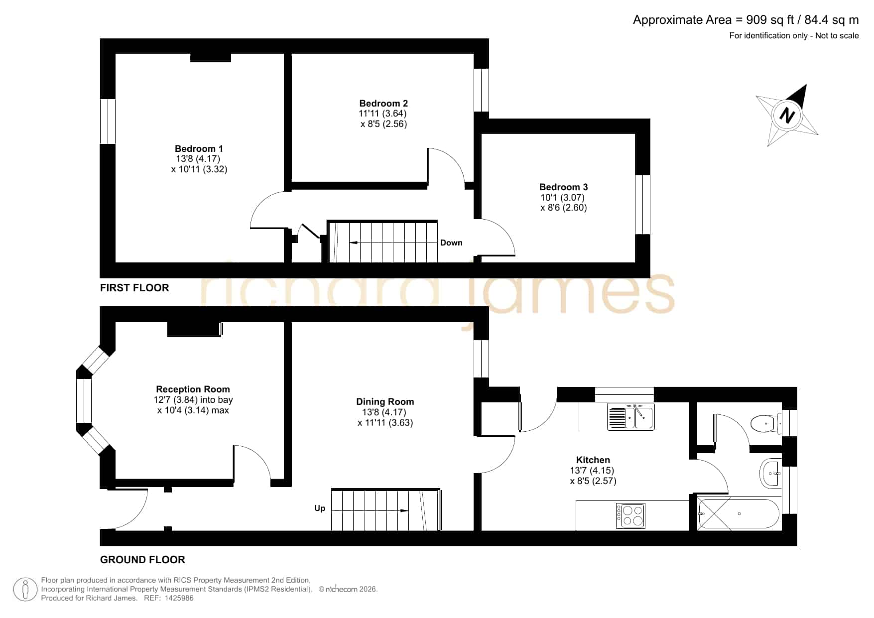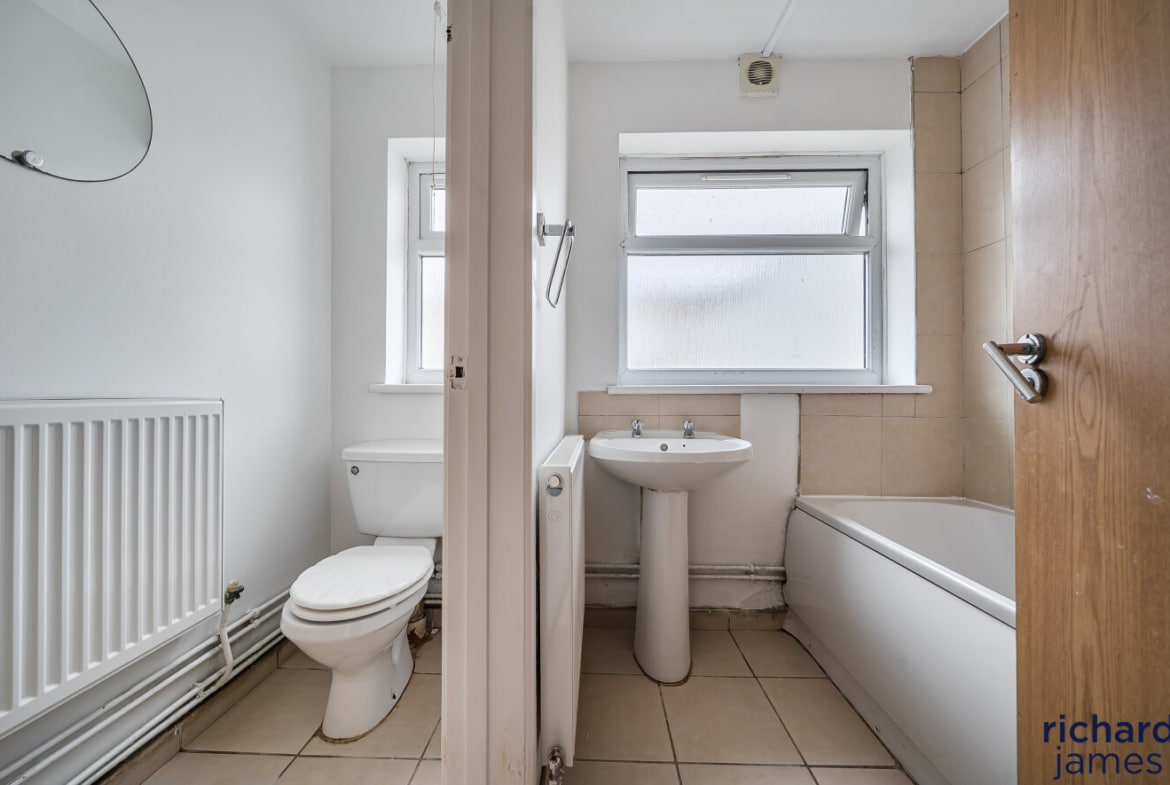 Upstairs, the home continues to impress. The first-floor landing leads to three well-proportioned bedrooms, including a generously sized main bedroom, and two further bedrooms—all of which are able to comfortably accommodate double beds, making the property especially versatile for families, guests, or home-working setups.