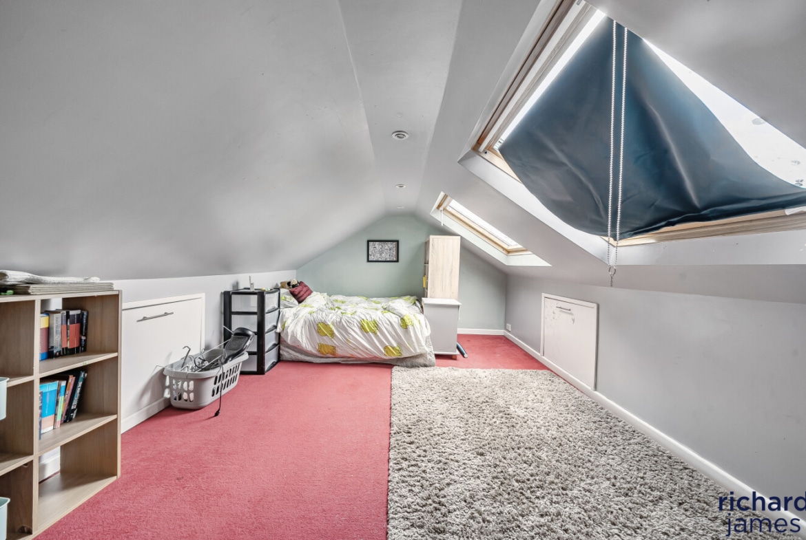 Upstairs on the first floor, you’ll find two comfortable double bedrooms, a versatile single bedroom, and a stylish family bathroom. The converted loft adds a valuable second floor, offering a fourth bedroom along with useful additional storage space—ideal for growing families or those needing a home office.