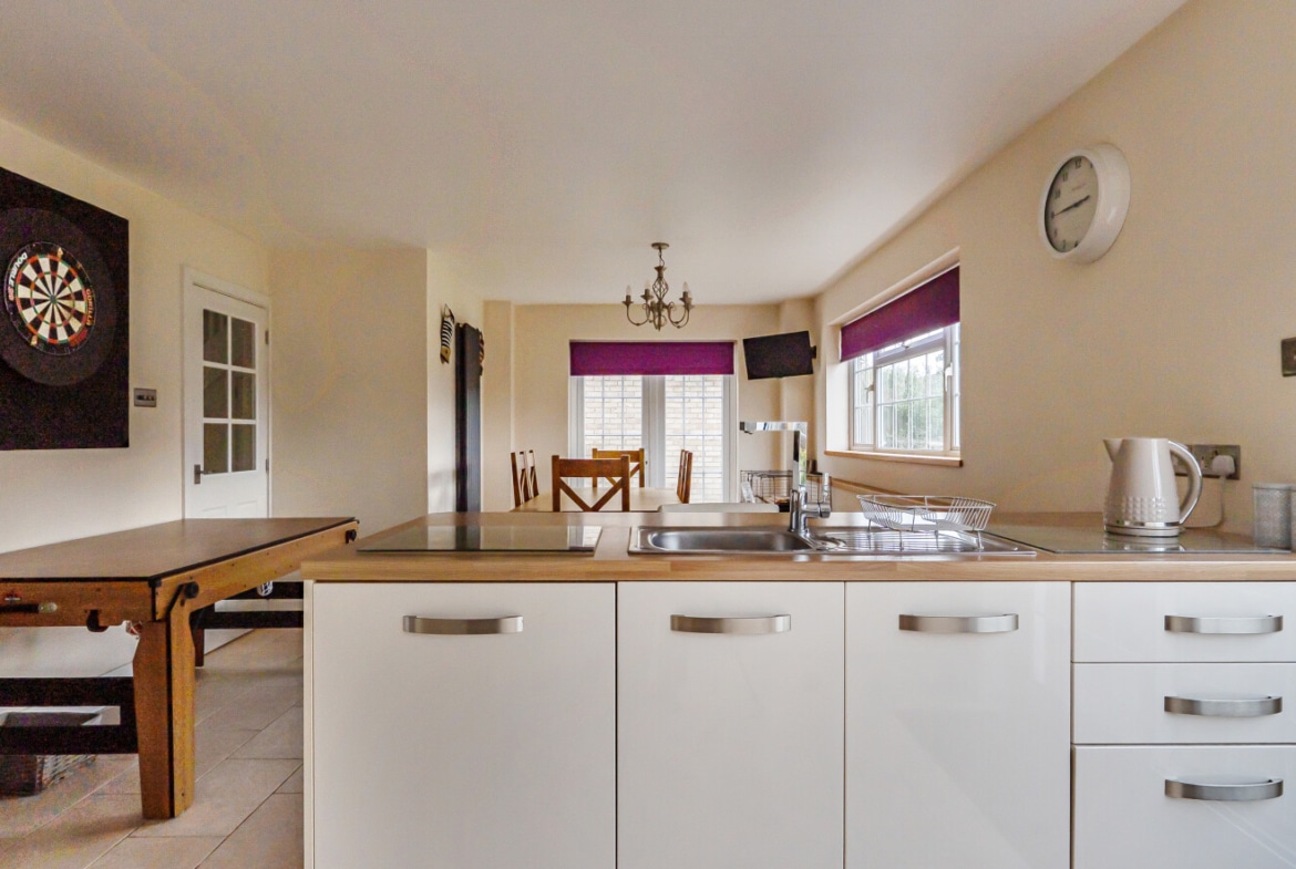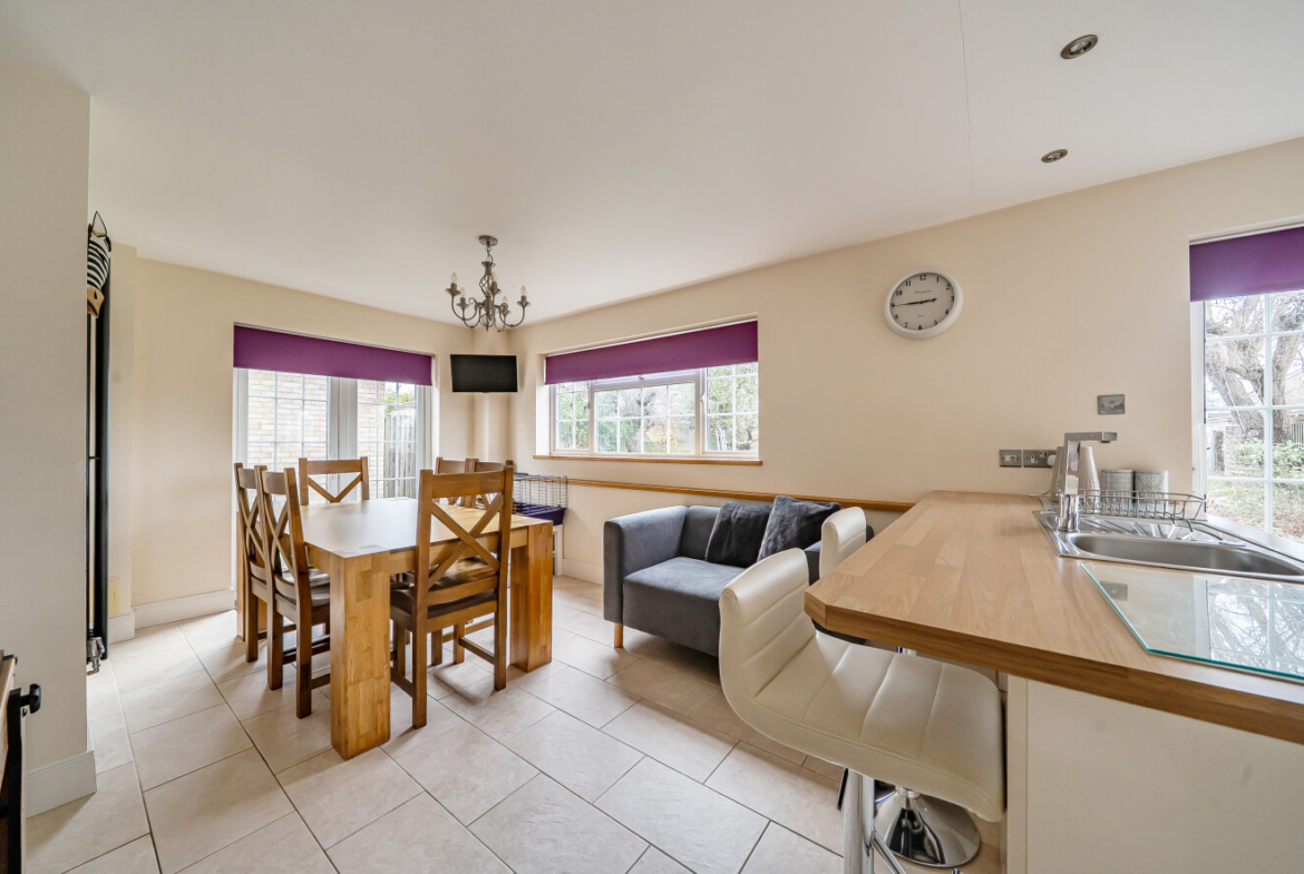 There is a convenient downstairs WC, adding practicality for everyday living. At the heart of the home lies the large open-plan kitchen diner, an excellent space for hosting family and friends, offering both functionality and style. The ground floor is completed by access to a generous rear garden, ideal for outdoor dining, entertaining, or family time.