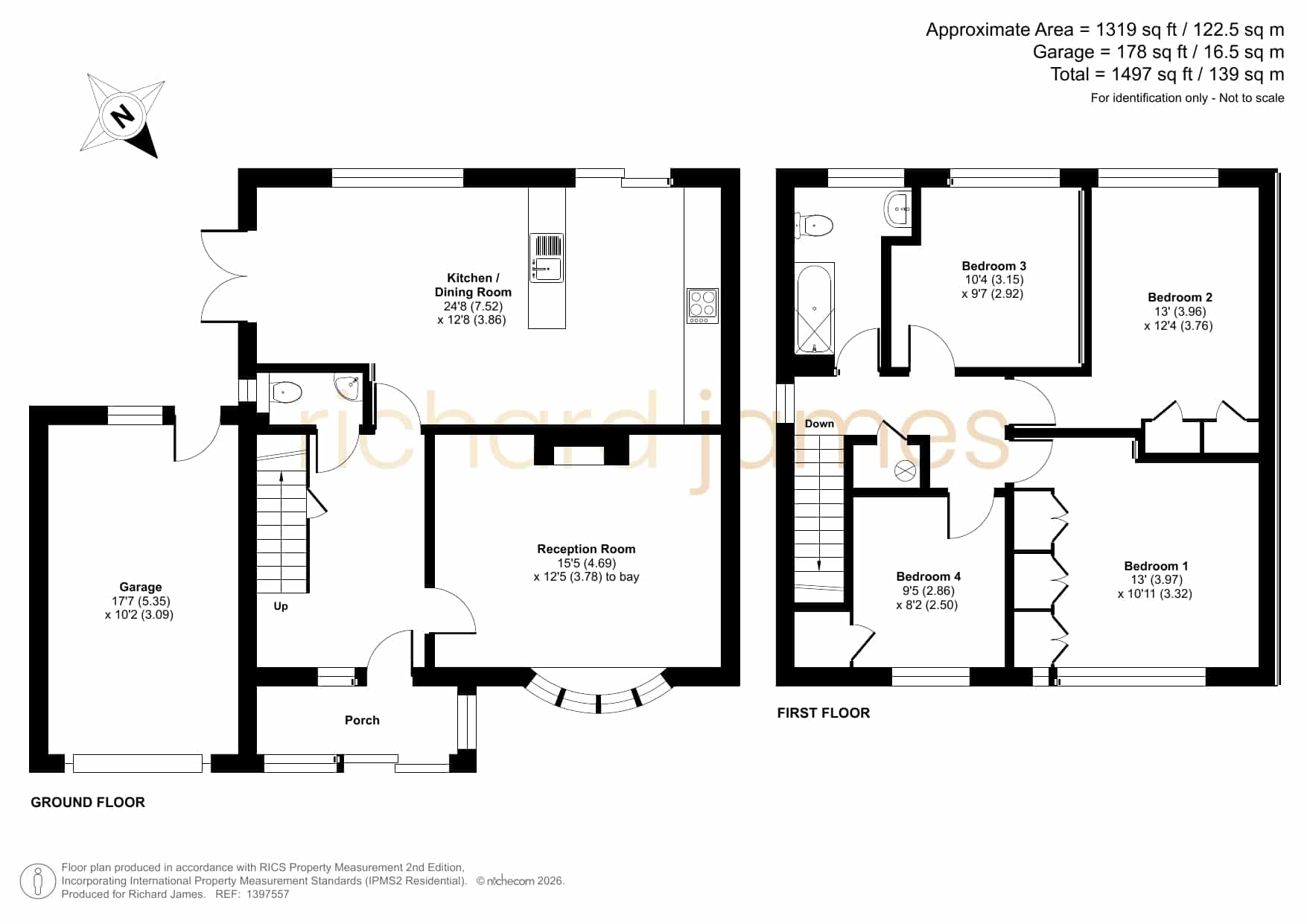 Upstairs, the property boasts a modern family bathroom and a well-proportioned master bedroom, offering ample space for furniture and storage and providing a relaxing retreat. In addition, there are three further double bedrooms, all generously sized, making this an ideal home for growing families.