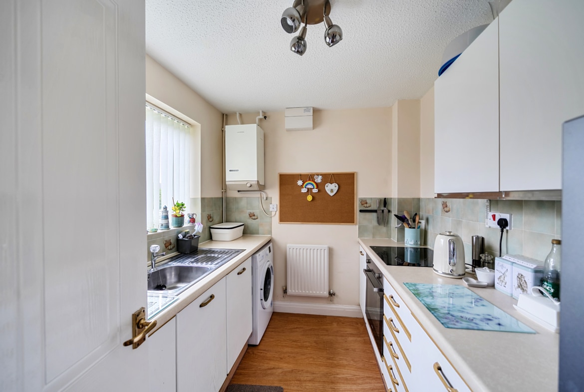 Adjacent to the lounge is a well-planned kitchen, offering practical work surfaces, storage and space for appliances, with excellent potential for personalisation or future enhancement to suit individual tastes and requirements.