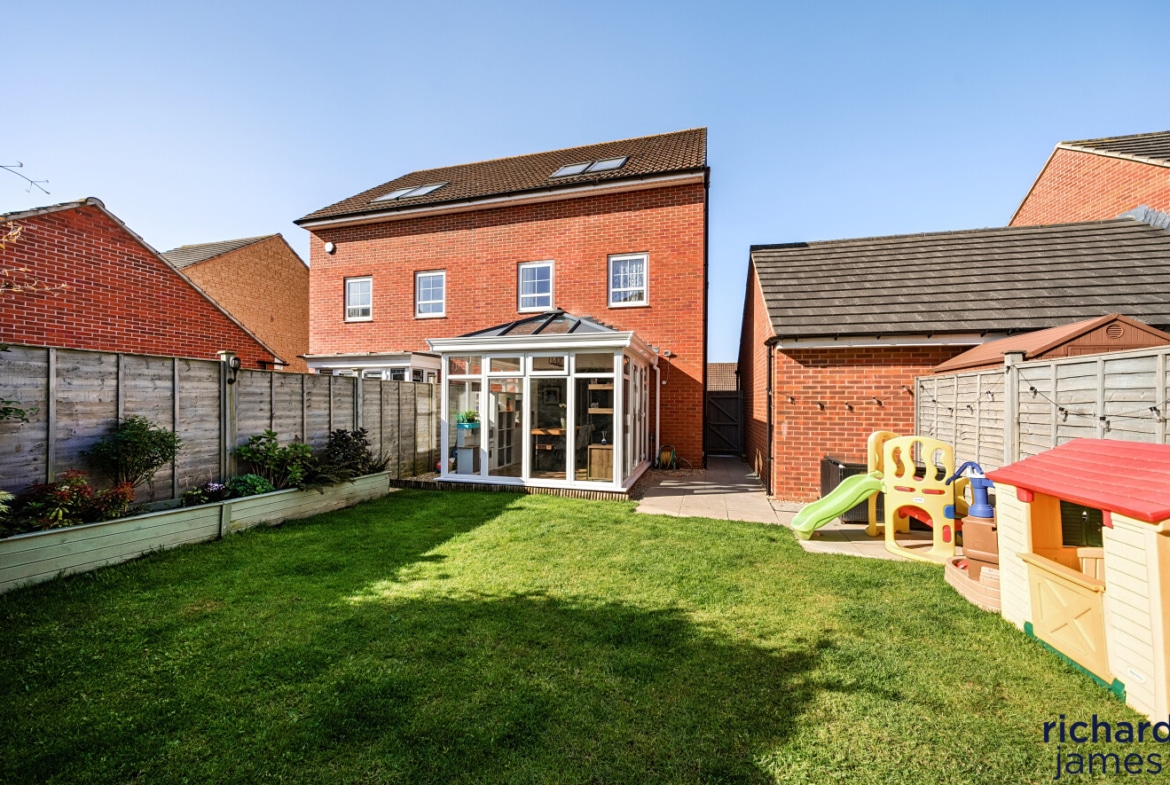 Outside, the beautifully maintained garden offers a peaceful retreat, featuring both a patio area and a lush lawn for outdoor enjoyment. Practicality is ensured with driveway parking and a single garage, adding to the convenience.
