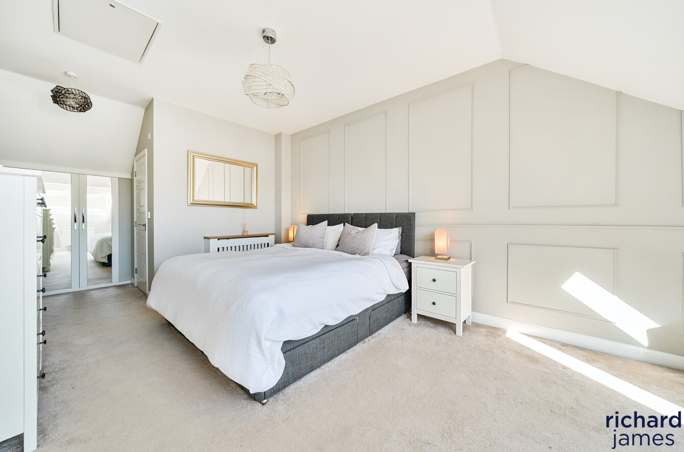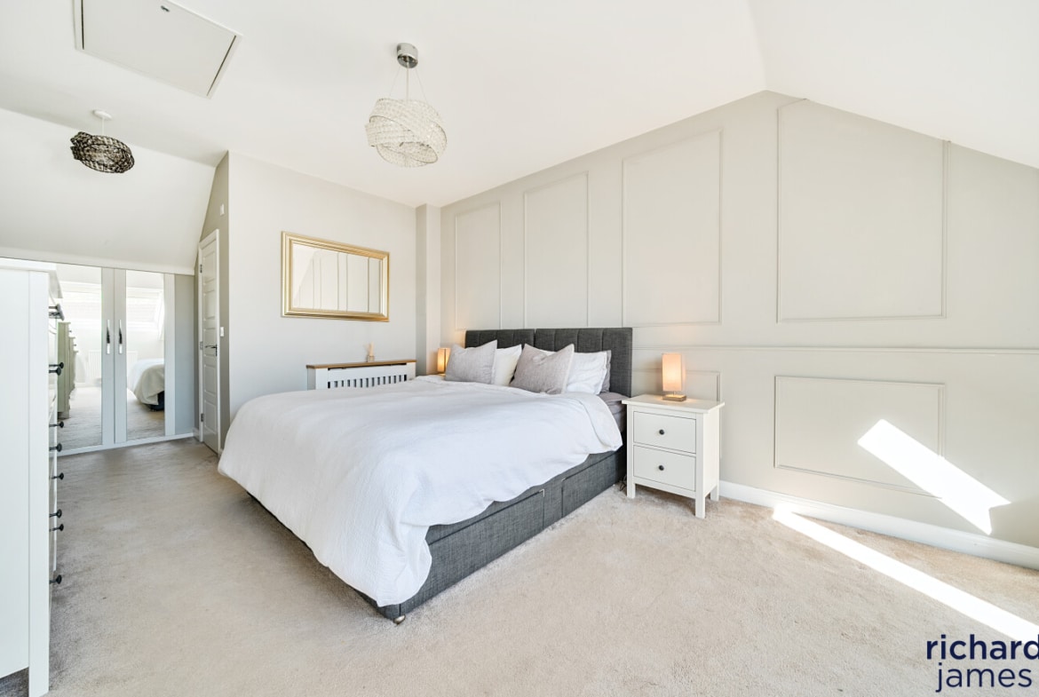 Prepare to be wowed by the top floor, a stunning private suite that spans the entire width and depth of the property. With elegant panelling and beautiful décor, this space exudes charm and sophistication. It features a spacious bedroom area, an impressive dressing area with multiple built-in wardrobes, and a luxurious three-piece shower room.