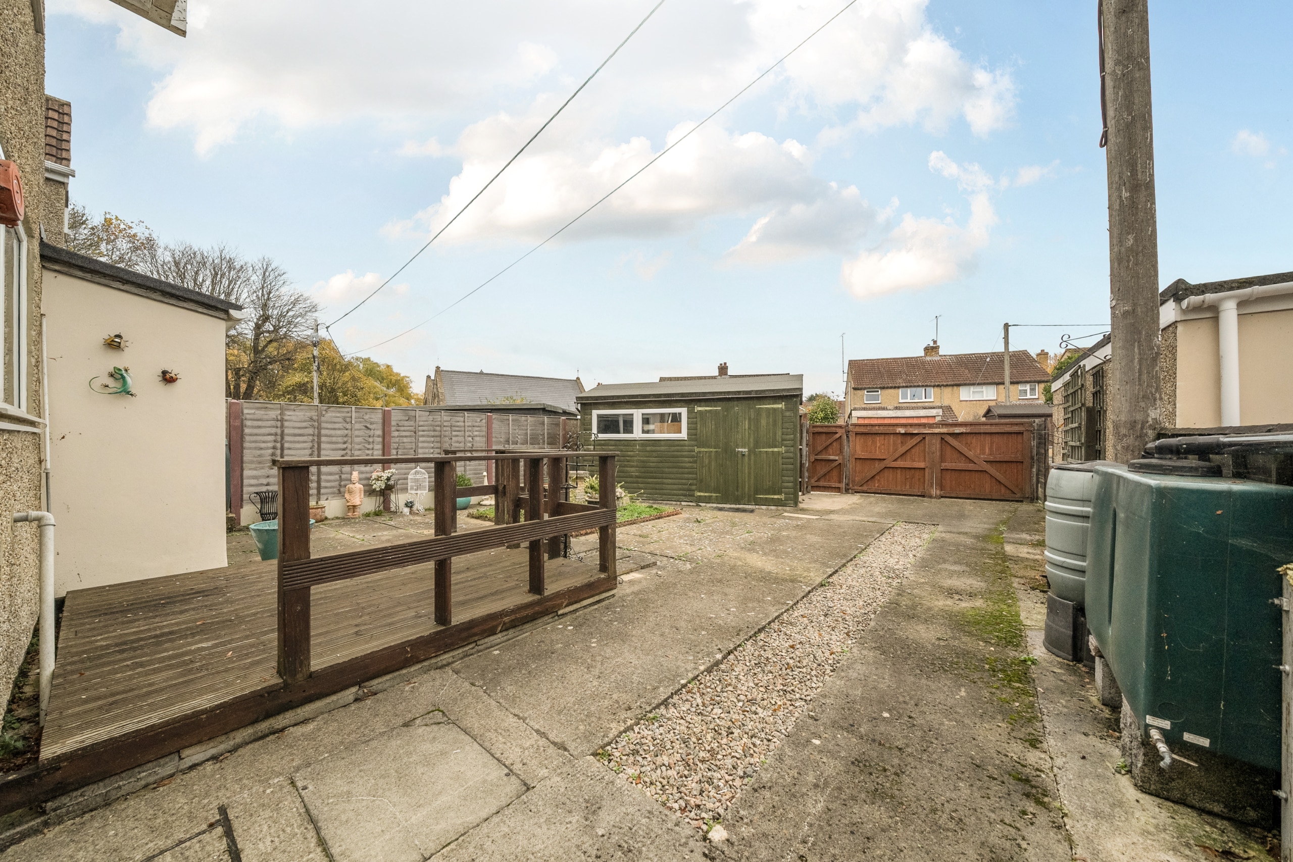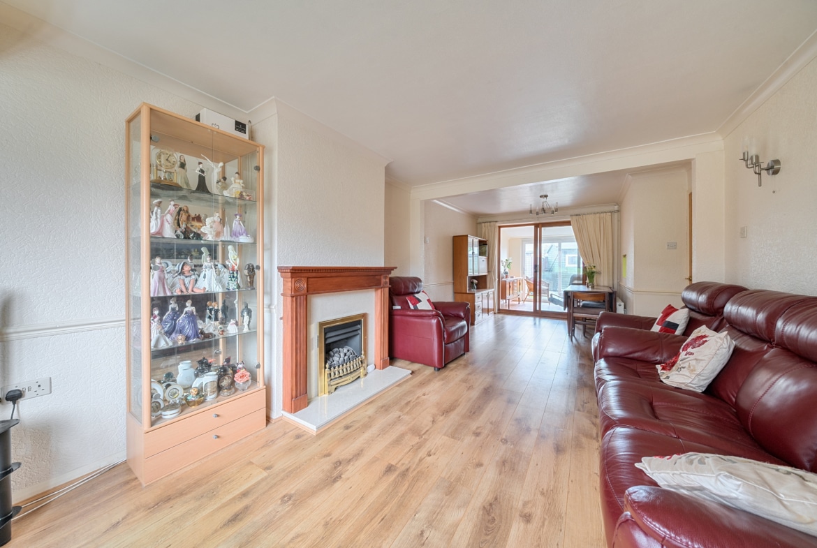 The accommodation includes a welcoming entrance hall, a spacious reception room ideal for family living, and a sun room overlooking the garden. The fitted kitchen offers scope for improvement and could be reconfigured to create a modern open-plan space if desired. Upstairs, there are three generous double bedrooms and a shower room.