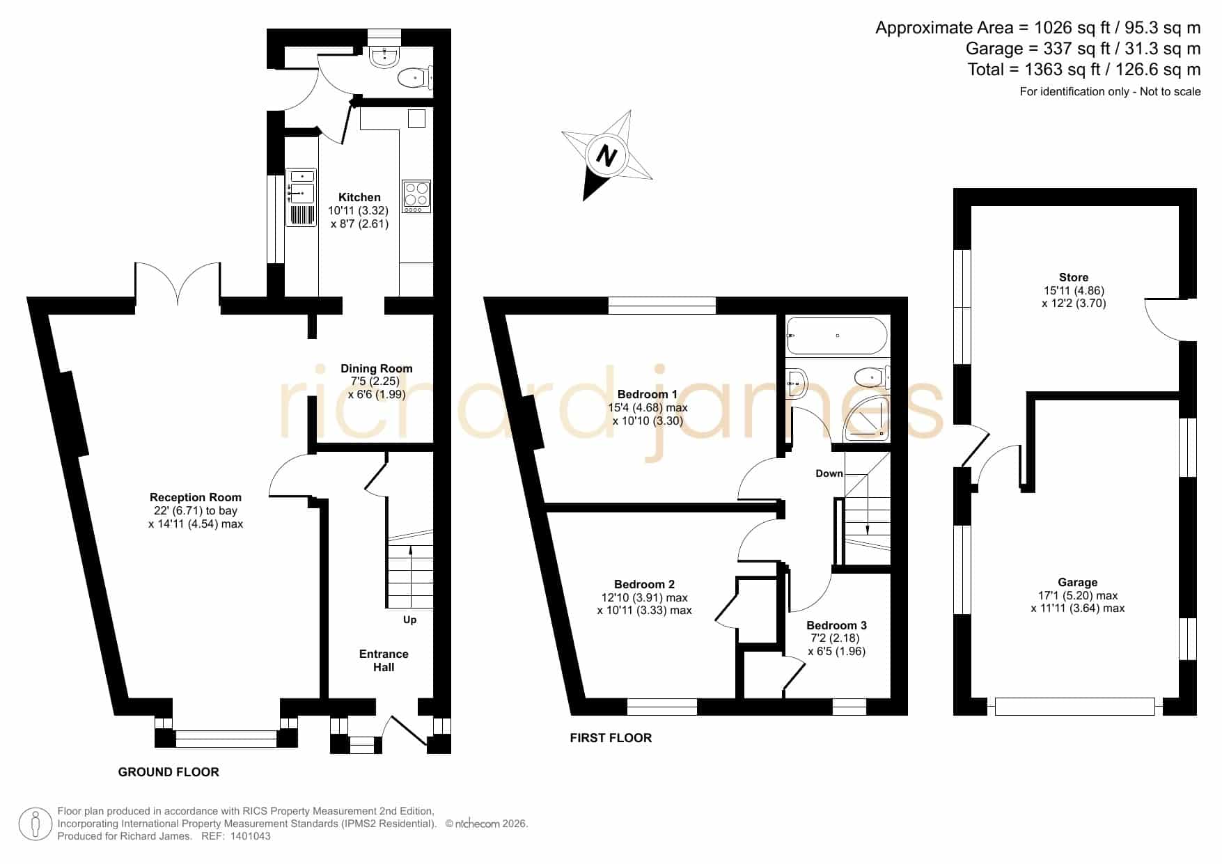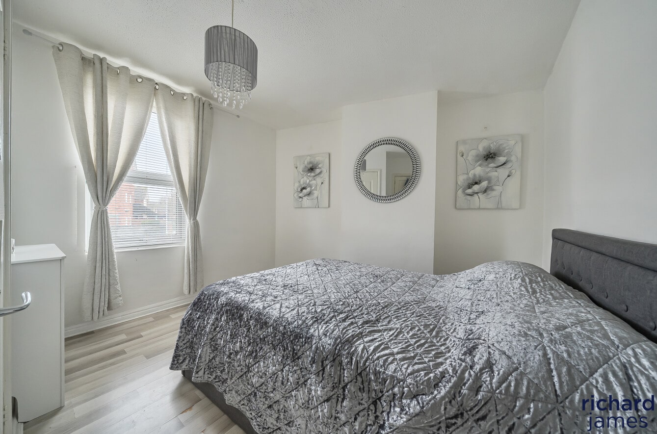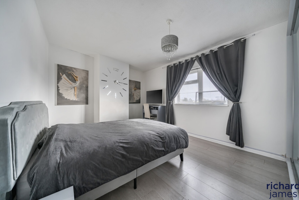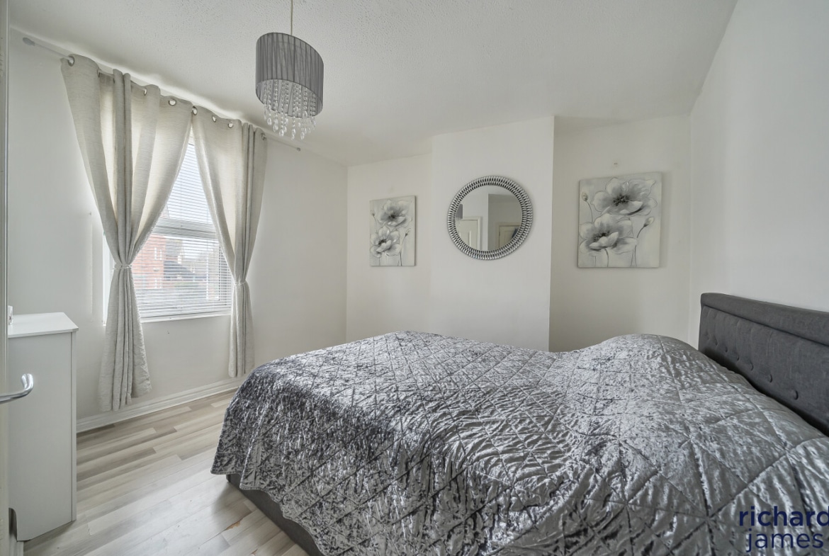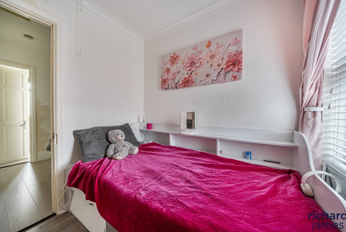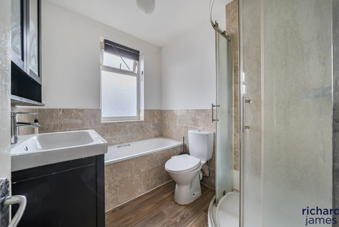 Upstairs, the property offers three bedrooms, including two generous doubles and a third ideal as a child’s room, home office or nursery. A modern family bathroom completes the first floor.