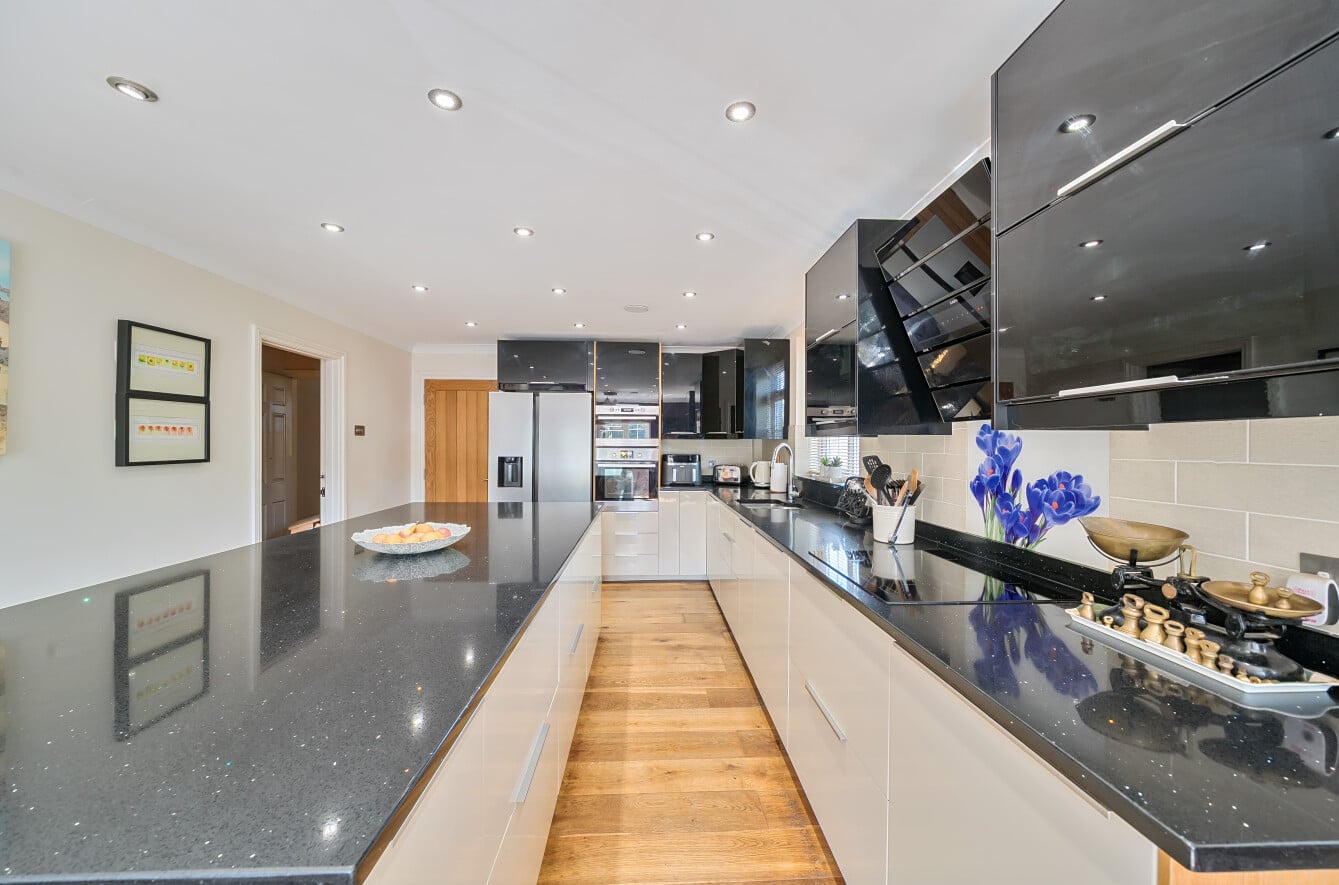 The heart of the home is the expansive kitchen and breakfast room, fitted with a large central island and designed with both practicality and sociability in mind. This space is complemented by a utility room and separate laundry room, offering excellent convenience. A downstairs cloakroom, ample storage and further reception rooms add to the sense of flexibility, with areas currently arranged as an office, games room and additional sitting rooms. These could readily be adapted for a variety of purposes, including a self-contained annexe if required.