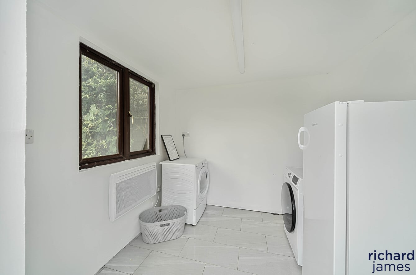 Outside, the property boasts a large rear garden with a favourable south-east aspect, ideal for families or those who enjoy gardening and outdoor living. The garage has been partly converted to create a useful utility area, while the driveway provides ample parking for several vehicles. With uPVC double glazing throughout and excellent potential to extend, subject to planning permission, this is a home that can truly grow with you.