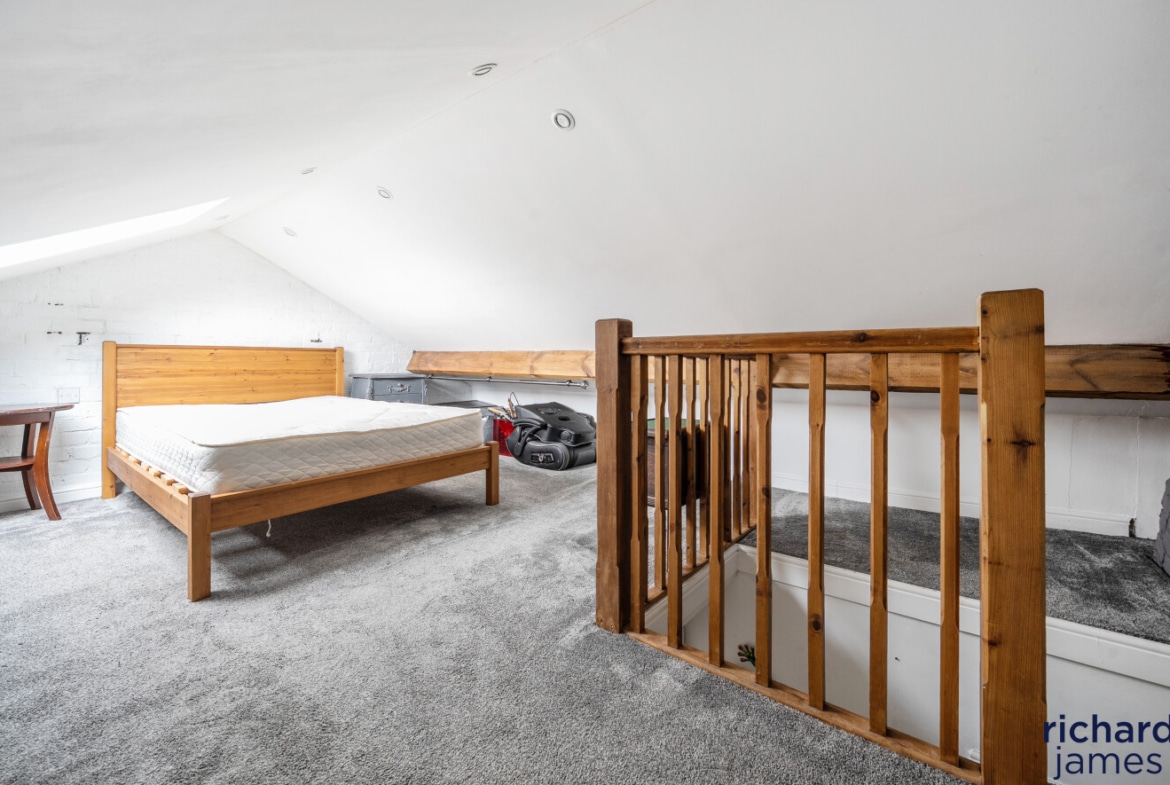 The second floor is a converted, multi-purpose loft room which currently has a bed in it and offers views of the rear garden via a velux window.