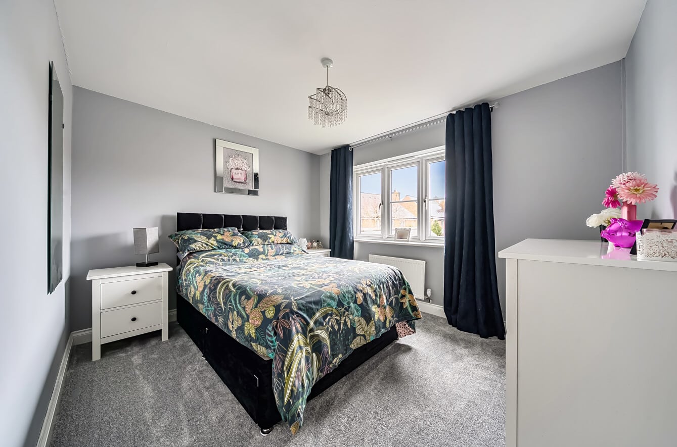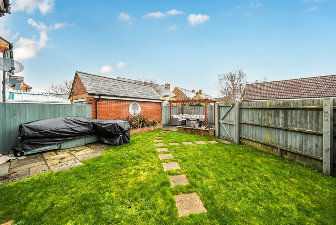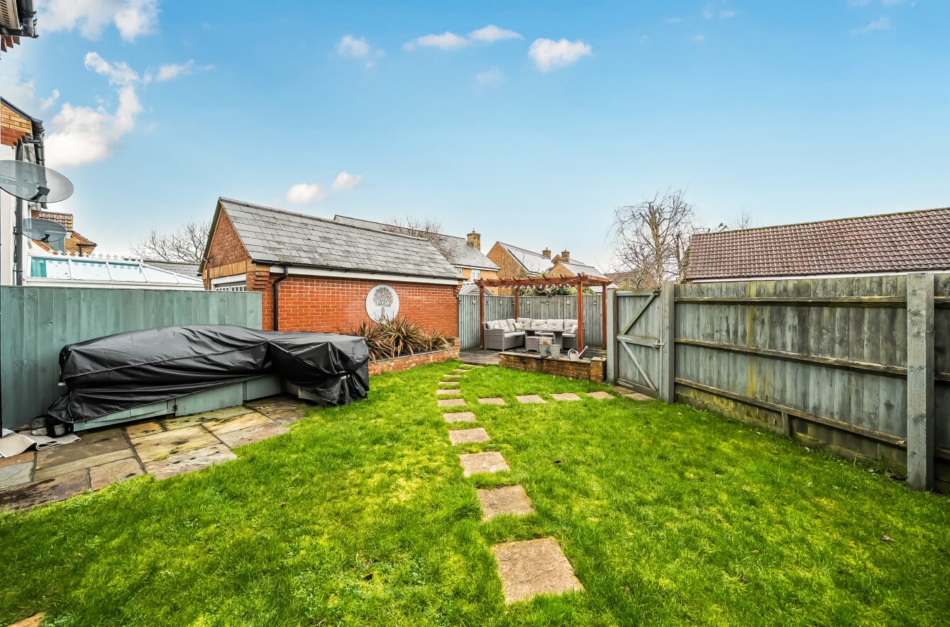 Outside, a generous driveway to the rear provides parking for up to four vehicles and leads to a detached double garage, offering further storage or secure parking. The garden to the rear is private, with both lawn and patio whilst the position opposite the play park creates a pleasant open outlook to the front.