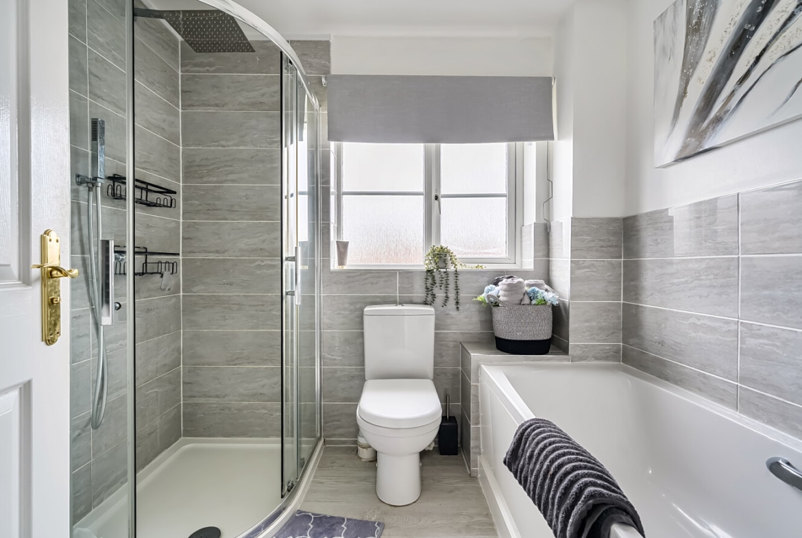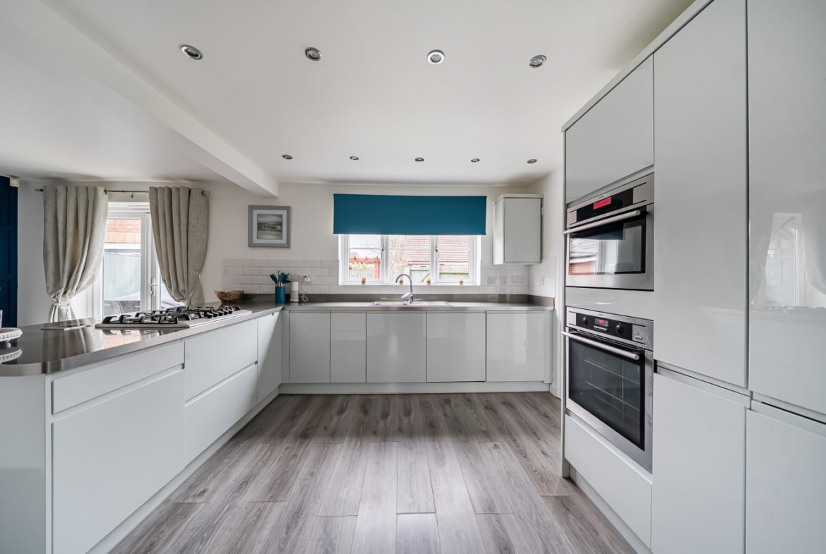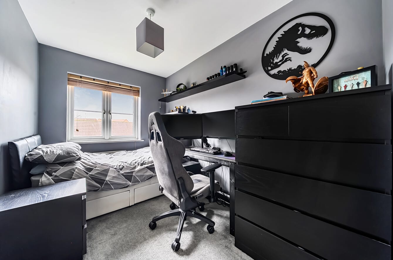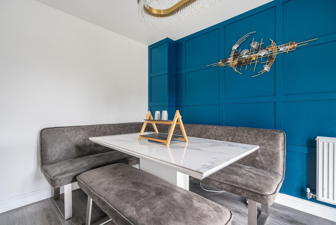 The ground floor is both practical and versatile. A bay-fronted reception room provides a comfortable and light-filled sitting room with a recently fit media wall, while to the rear the open plan kitchen/dining room forms the natural heart of the home — an ideal space for everyday family life and entertaining, with ample room for dining and gathering. A separate reception room offers flexibility as a playroom, home office or additional living room, further complemented by a utility room and downstairs cloakroom.