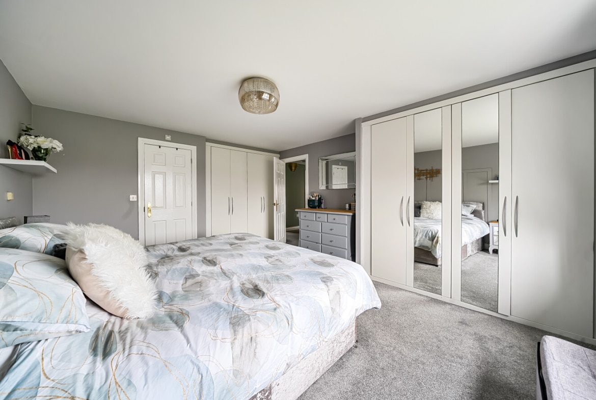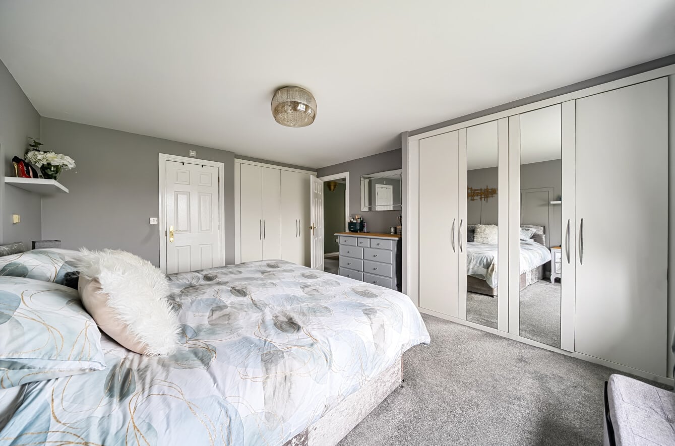 Upstairs, four good sized bedrooms are arranged around a central landing. The three double bedrooms all benefit from built in wardrobe space with the principal bedroom also offering its own en-suite shower room, while the remaining bedrooms are served by a four-piece family bathroom, making the layout particularly well suited to family living.
