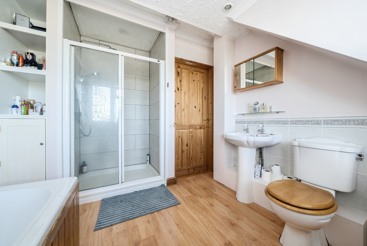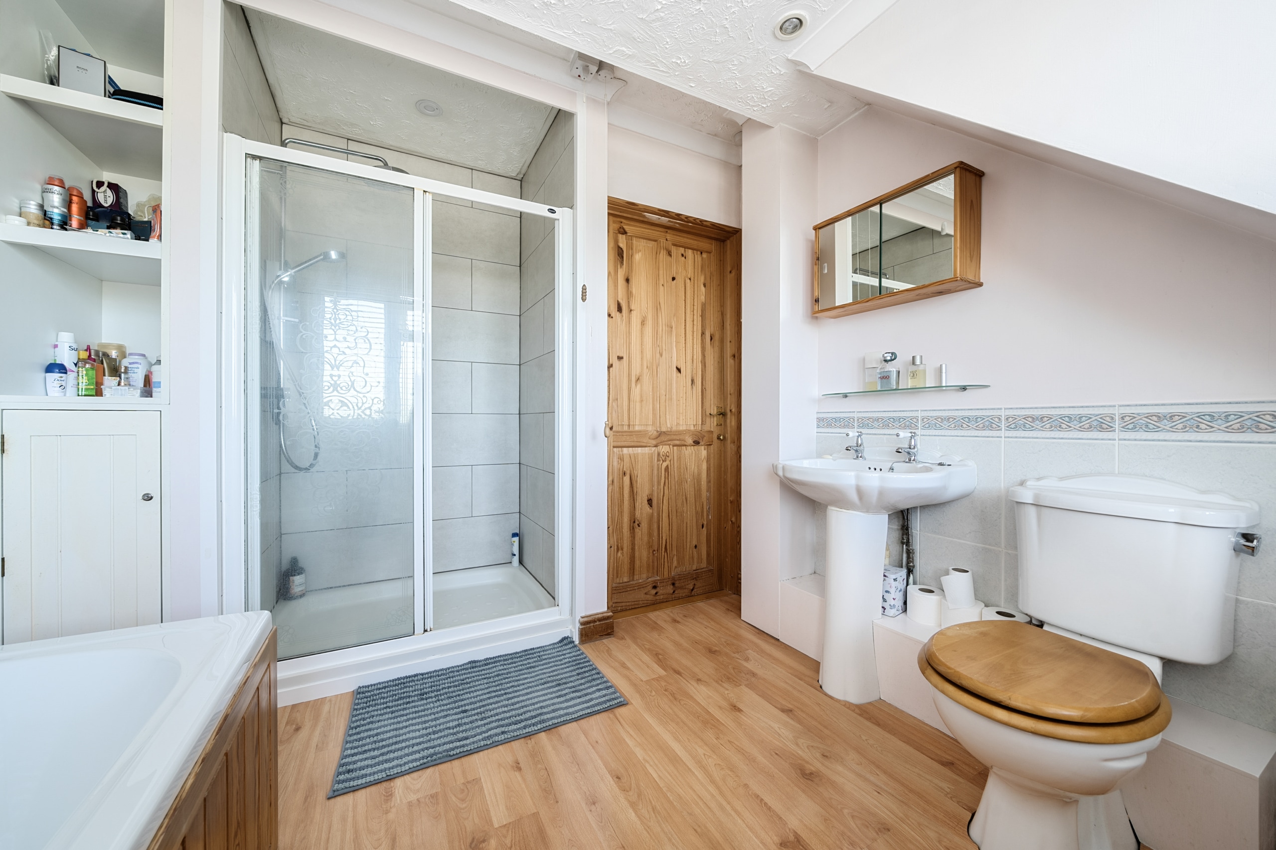 The upstairs has been extended with three double bedrooms ample storage and a main bathroom which boasts both a seperate bath and shower.