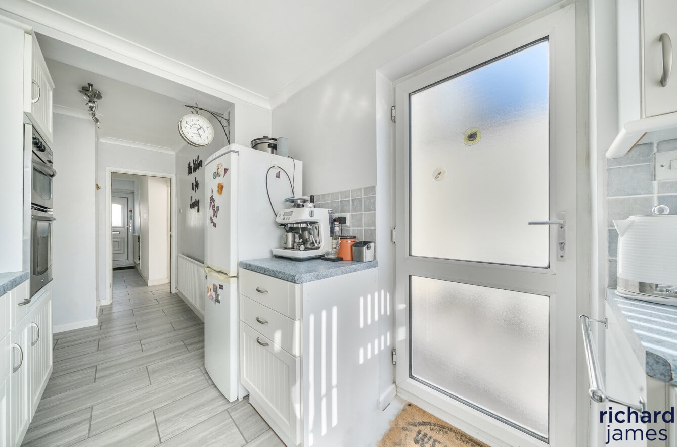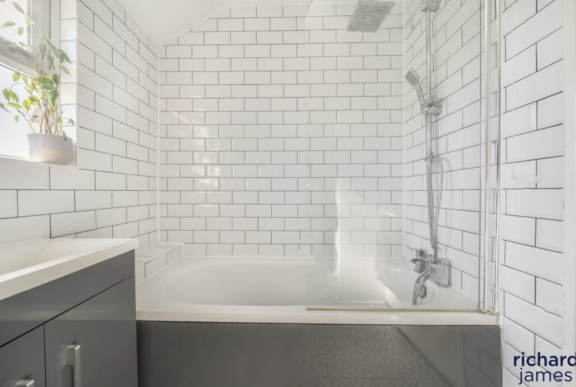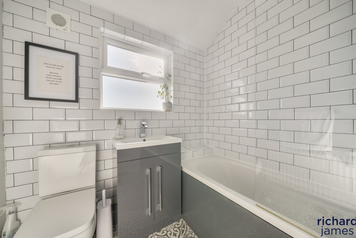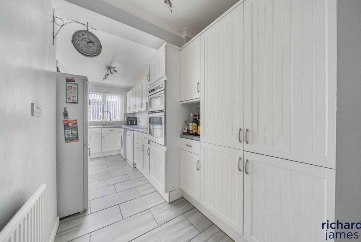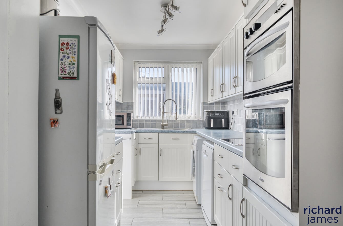 The ground floor living accommodation comprises; Entrance hall, W.C, a bay fronted living room with wood burner, the dining room with sliding doors to the rear garden and a modern kitchen.