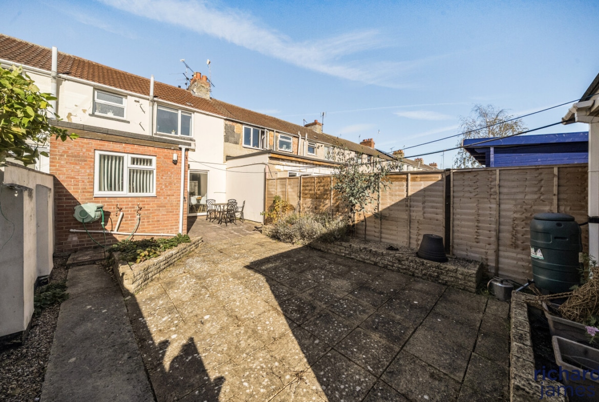To the rear is an enclosed rear garden which is low maintenance laid to patio offering the perfect spot for entertaining and barbecuing leading to a detached garage accessed via rear lane.