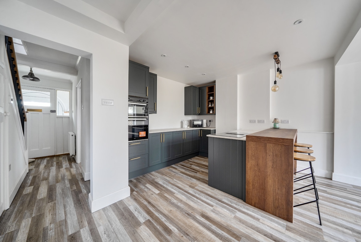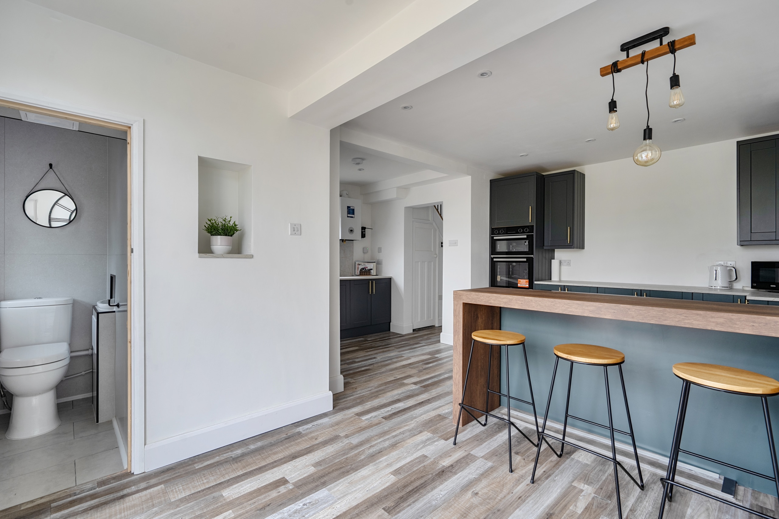 Upon entry the porch area will lead on to a welcoming entrance hall with a beautiful new black steel and oak banister/balustrade adding bold contrast and flow, softened by oak for a balanced contemporary look setting the tone for the rest of the property. The lounge is located on your left and boasts new carpets alongside the bay window. The rear of the property is very impressive with a newly fitted kitchen with breakfast bar and plenty of space for a dining table alongside. A utility cupboard has conveniently been created just off the kitchen. The modern w/c completes the downstairs space.