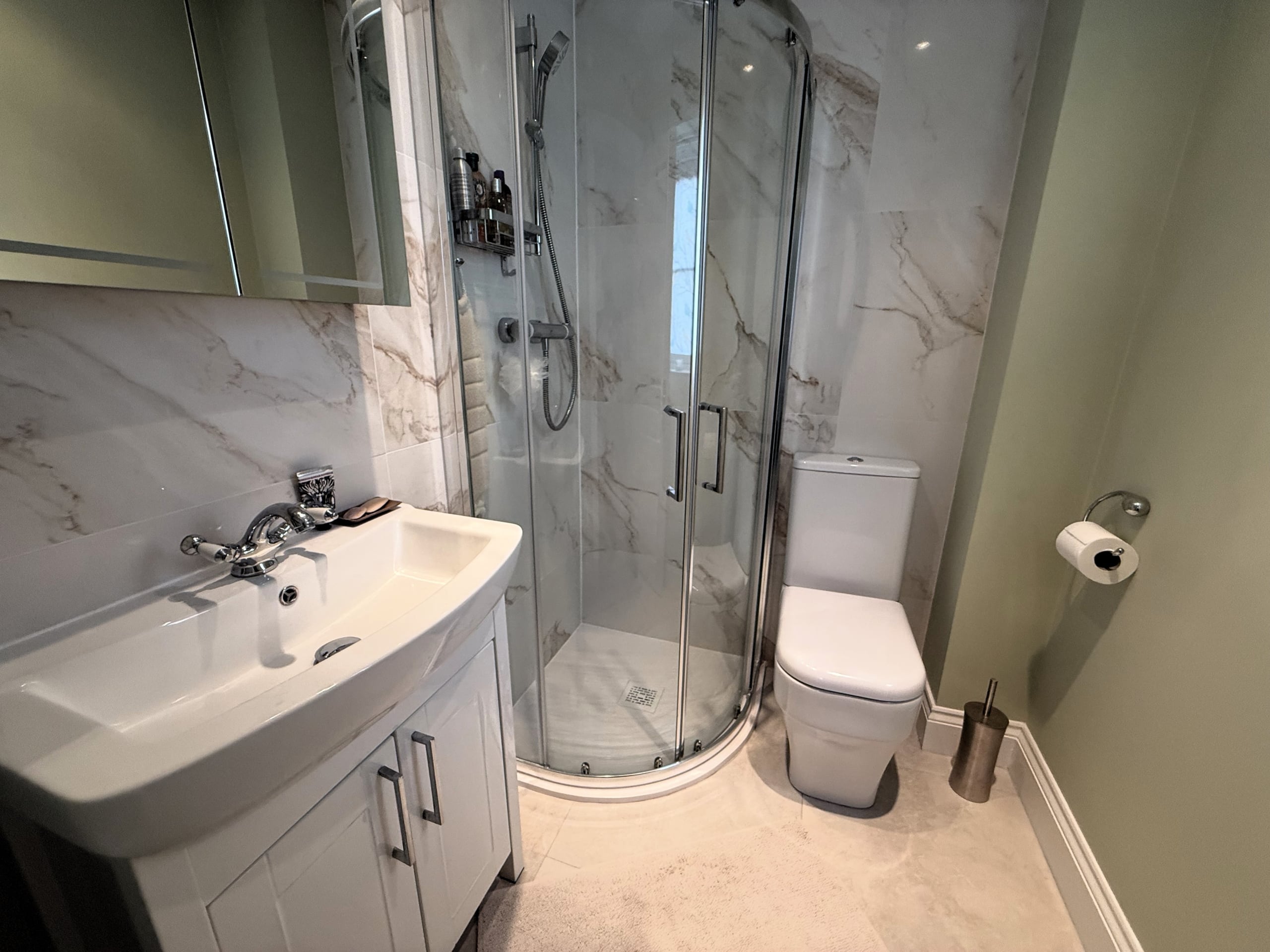 The well appointed accommodation comprises: Generous Hall, Cloakroom, 21ft dual aspect Sitting Room with patio doors leading into the South facing Rear Garden, separate Dining Room, a fitted Kitchen/Breakfast Room with range cooker and useful Utility Room. With the Four Bedrooms, with Ensuite To Bedroom One and further Family Bathroom, to the first floor.