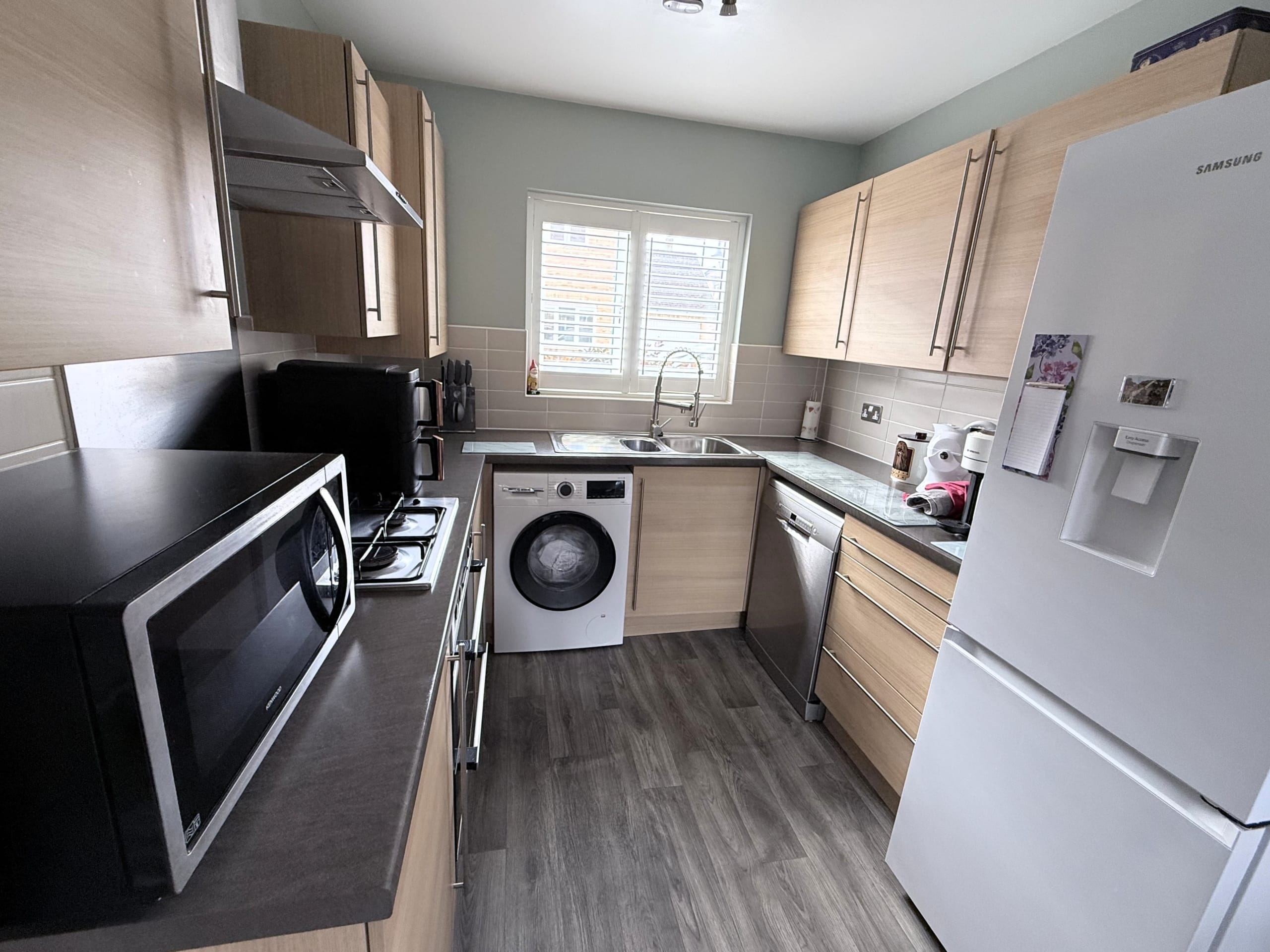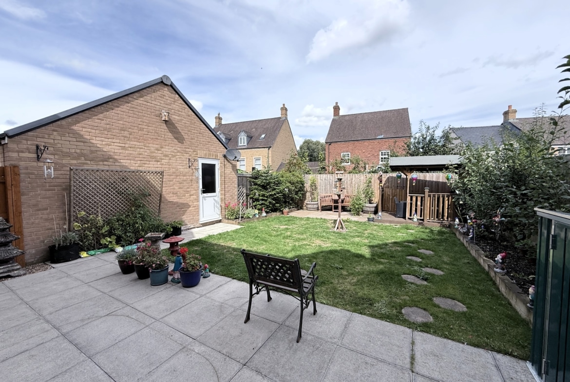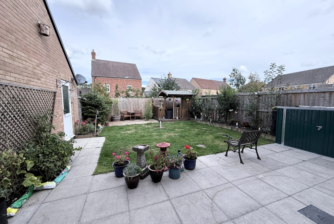 To the Outside, there is a pleasant enclosed landscaped Rear Garden, which enjoys a pleasant aspect. With a full width patio area, opening to lawn, with raised shrub borders to sides, further sun patio to the rear making the most of the sunshine and further decked area. The garden is enclosed by timber fencing with gated pedestrian access to the driveway and personal door to the detached Garage. With up and over door, eaves storage, power and light and driveway parking to front for circa. three vehicles.