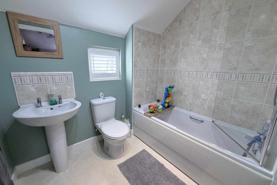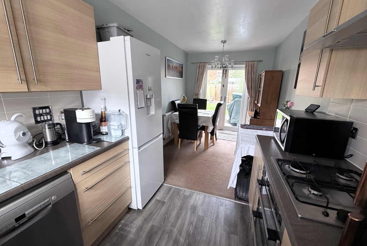 The property comprises; Hall, Cloakroom, 21′ Sitting Room with bay window and PVCu double glazed doors opening into the pleasant Rear Garden, 18′ fitted Kitchen/Dining Room, also with patio doors into the Rear Garden. With the Three Bedrooms to the first floor, with refitted En-suite Shower Room to Bedroom One and further Family Bathroom.
