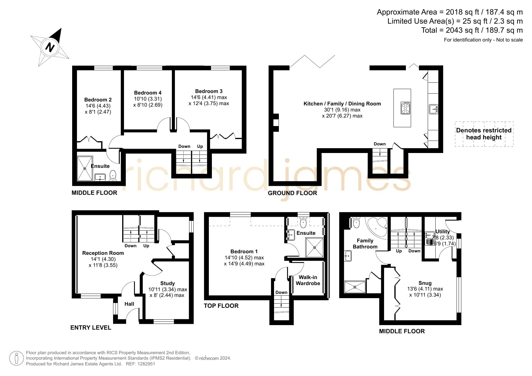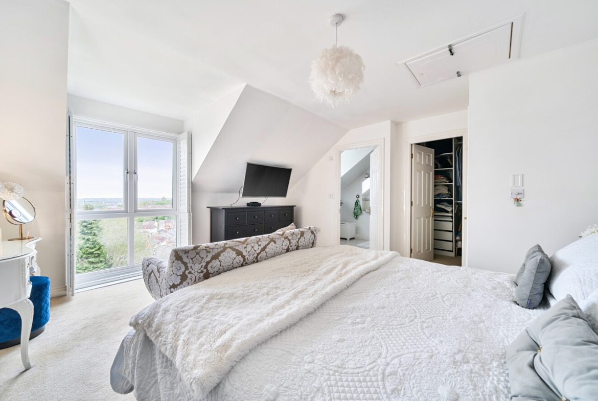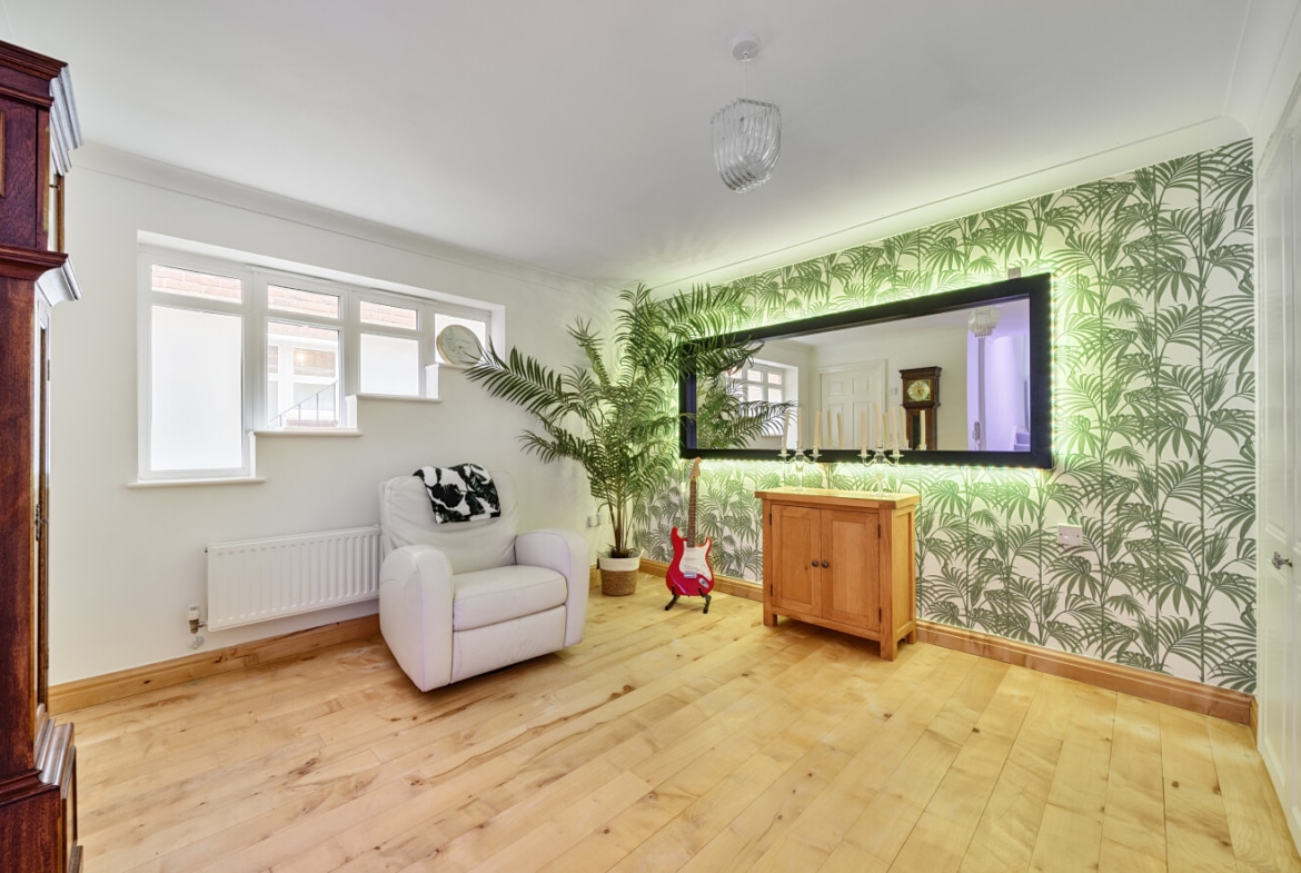 This well appointed home, has been much improved by the current owners to provide spacious open plan living, as well as suited to those working from home. Offering over 2000sqft of living space which comprises; Entrance Hall, which opens into a spacious Reception Room with vaulted ceiling, generous Study and Coffee Room, with staircase leading upto the impressive Bedroom One with picture window offering panoramic views, as well as Ensuite Shower Room and walk-in wardrobe. To the middle floors, you’ll find three further double Bedrooms, one which enjoys an additional Ensuite Shower Room. As well as, a lovely Snug, useful Utility Room and large Family Bathroom, with four piece suite. With stairs leading down to the ground floor, here is where you will find the heart of the home, the superb 30′ Kitchen/Family/Dining Room, which includes a modern refitted Kitchen, with integrated appliances and island, large triple glazed bi-folding doors open into landscaped Rear offering far reaching views.