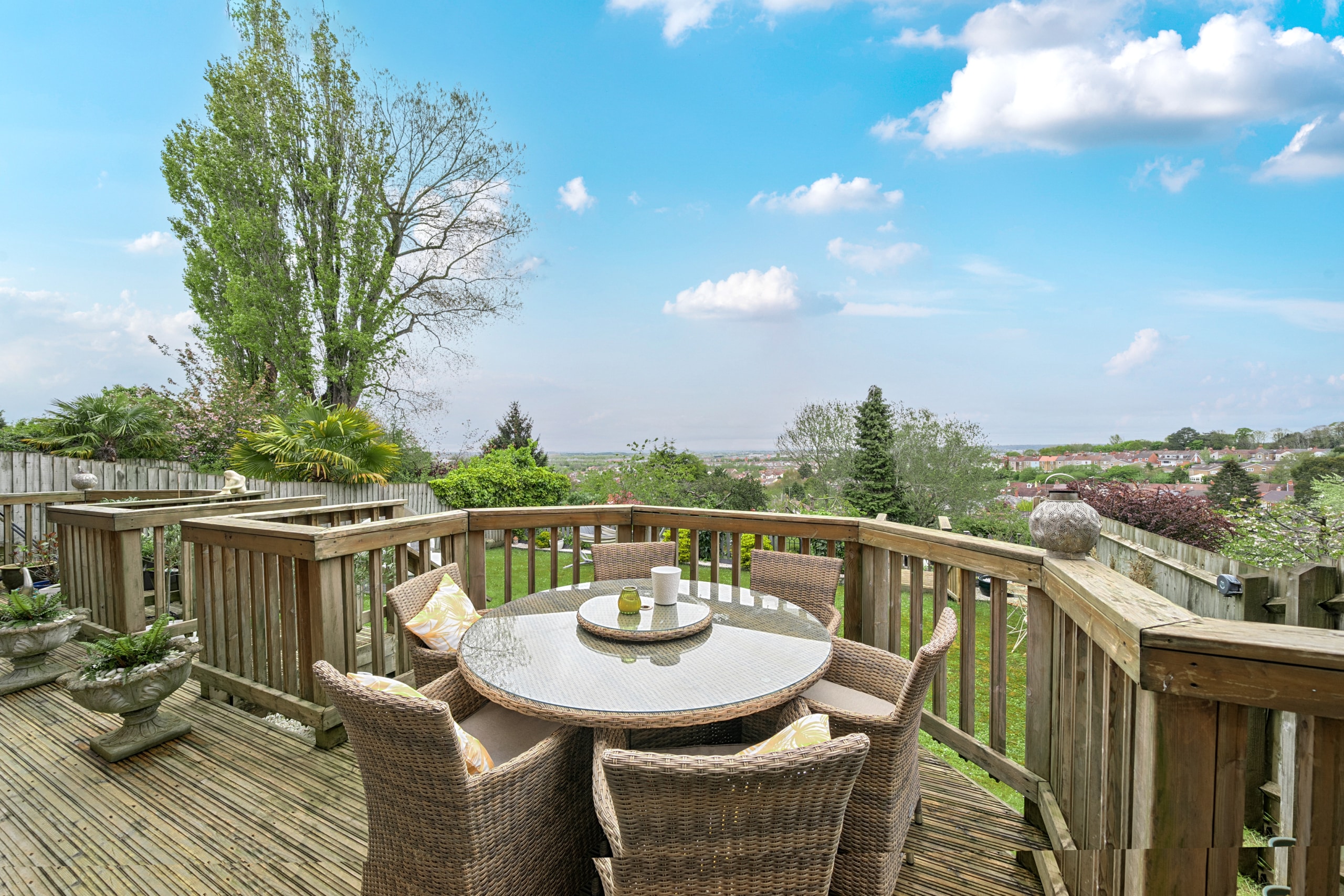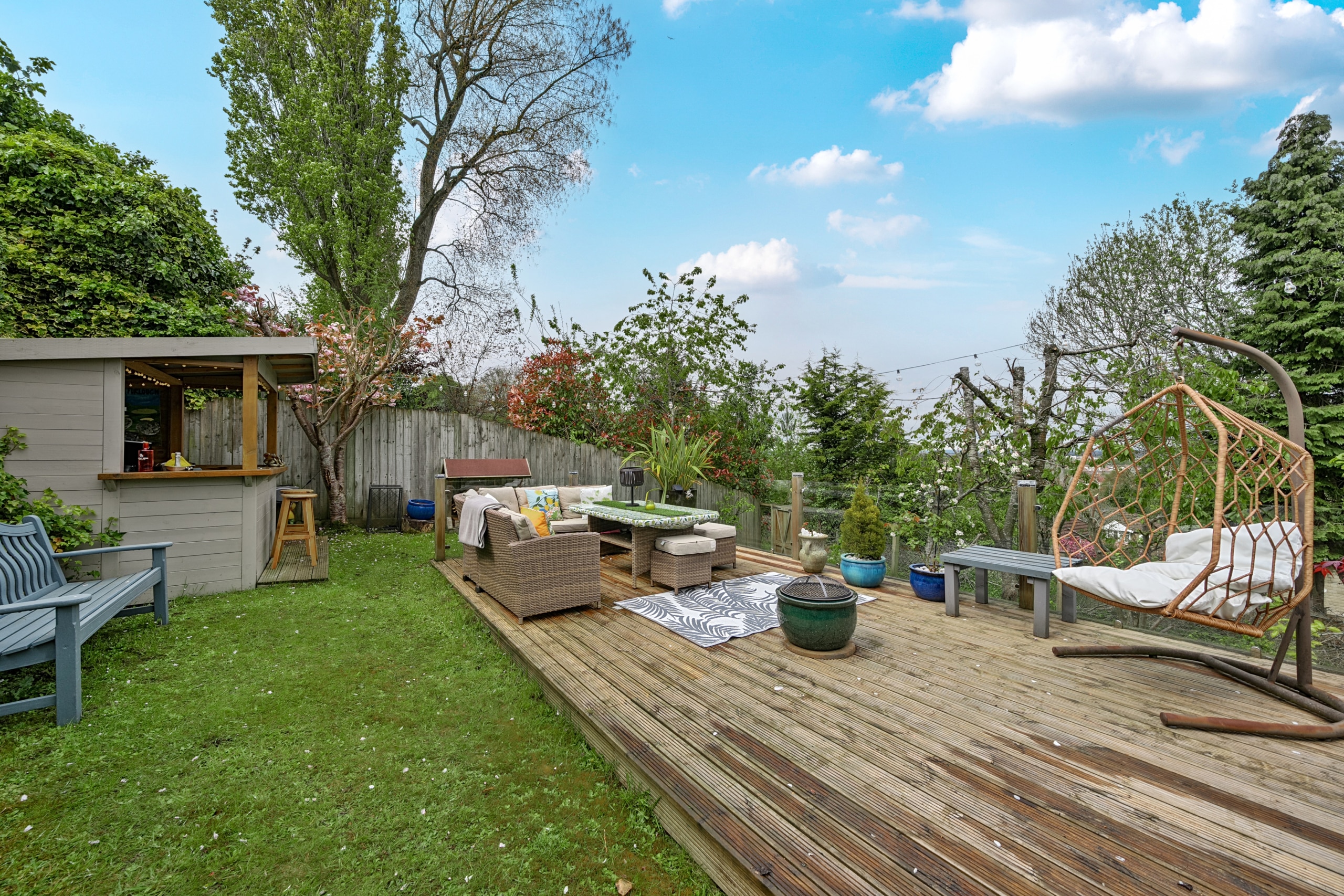 To the outside, features a three-tiered garden designed with the family in mind and enjoys a sunny aspect. With full width decked area, perfect for entertaining and alfresco dining in the summer, with steps leading down to lawned garden perfect for the children and the lower level has further lawn and been recently decked with glass screening to make the most of those views, as well as an outdoor bar, perfect for entertaining. The garden enjoys fantastic views over Swindon and scenic backdrop.