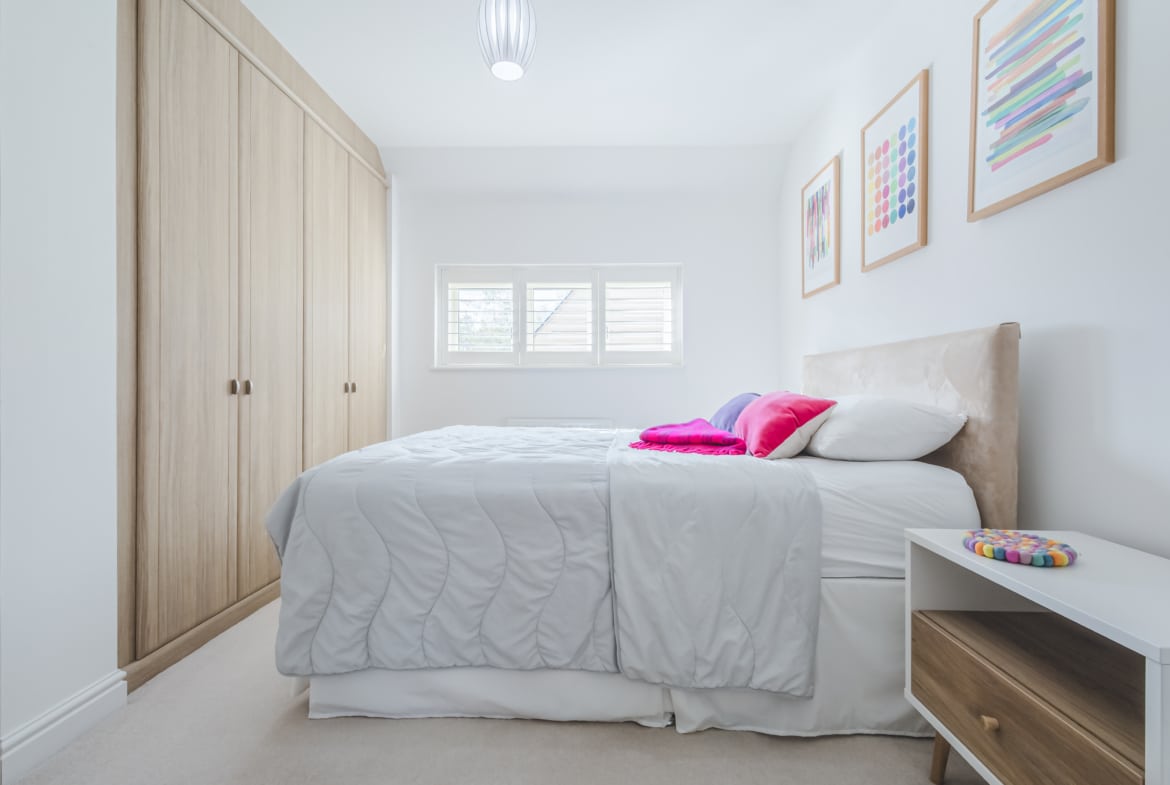 Upstairs, the first floor offers four bedrooms, including a generously sized principal bedroom with fitted wardrobes and a stylish ensuite shower room. Three further bedrooms are served by a modern family bathroom, creating flexible accommodation for families or visiting guests.