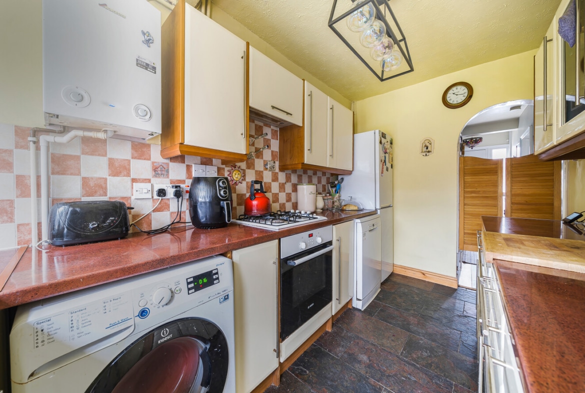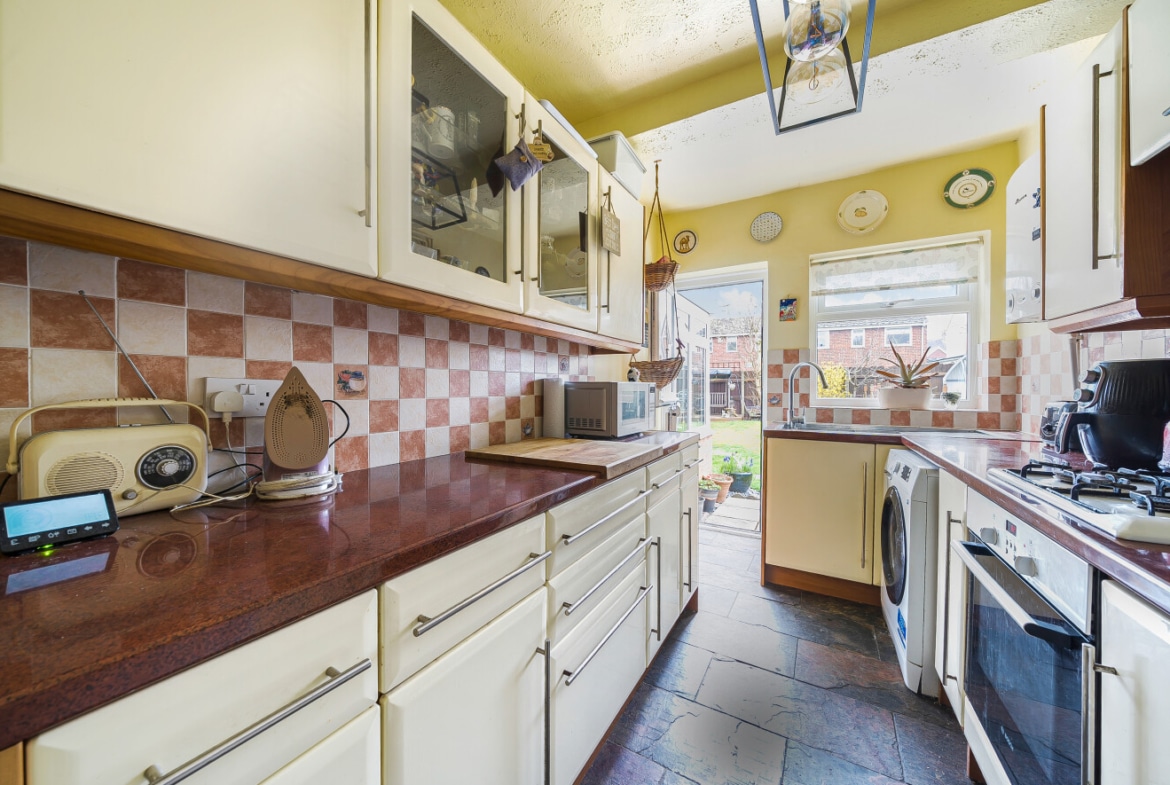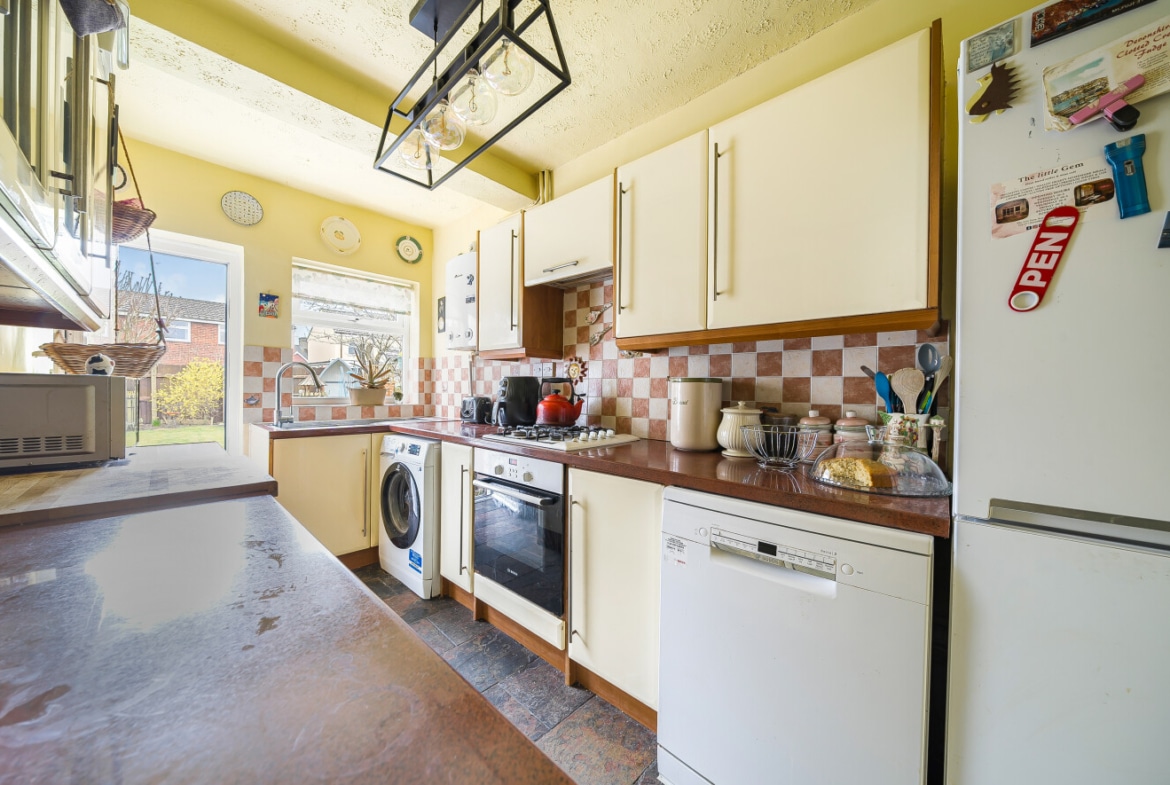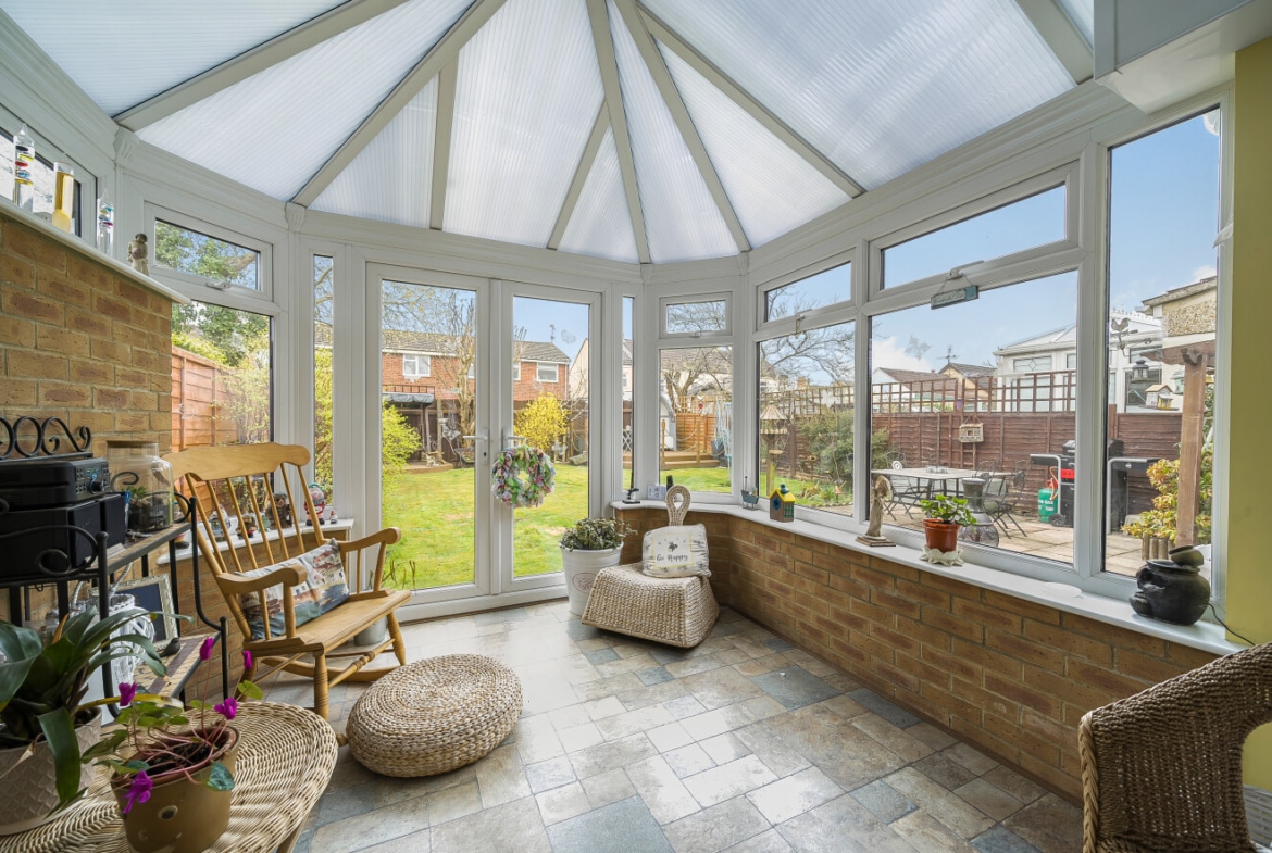 The ground floor welcomes you with an inviting entrance hall leading to the lounge diner. The raised dining space benefits from natural light streaming through the bay-fronted window, creating a bright and airy feel. To the rear, a conservatory has been added, providing an additional relaxing space with doors opening directly onto the garden. The adjacent kitchen, positioned at the back of the house, also offers garden access, making it a practical and well-connected space.