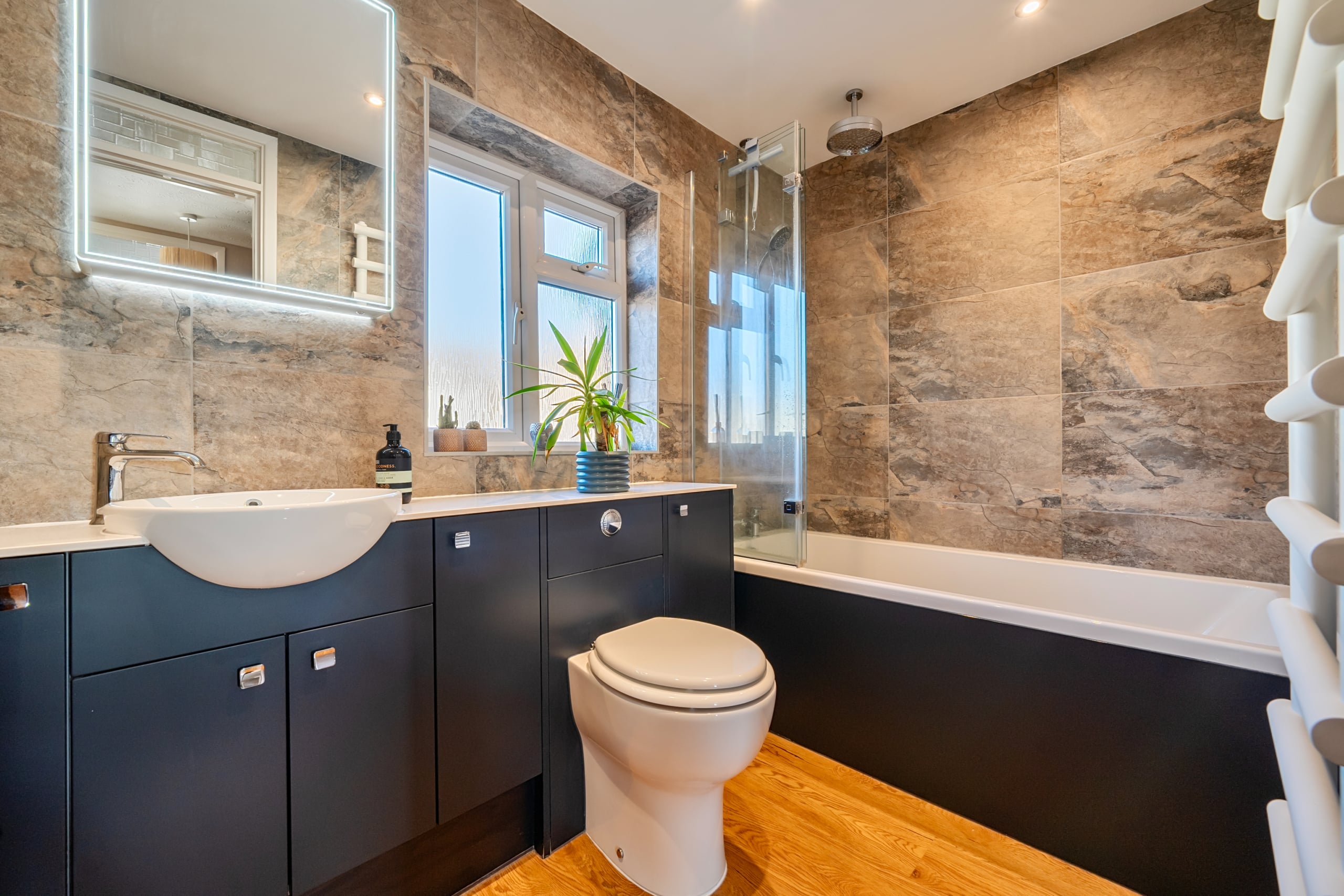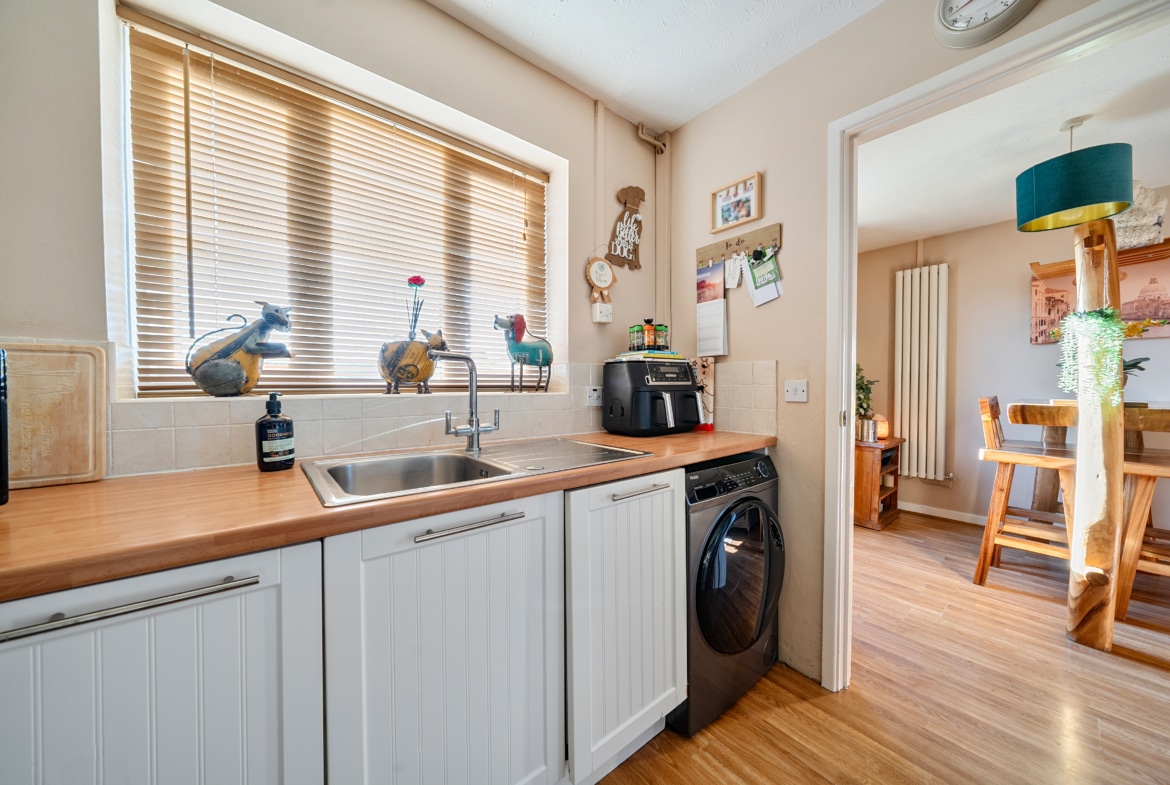 The accommodation is arranged over two floors and has been thoughtfully maintained throughout. The ground floor features a generous dual-aspect reception and dining room measuring over 20ft in length, providing ample space for both relaxing and entertaining. A modern, refitted kitchen sits to the rear of the home, designed with clean lines, good storage and a practical layout suited to everyday use. Upstairs, the property offers three well-proportioned bedrooms, each enjoying good natural light, with the rear rooms benefitting from attractive views. The stylish refitted bathroom adds a contemporary finish.