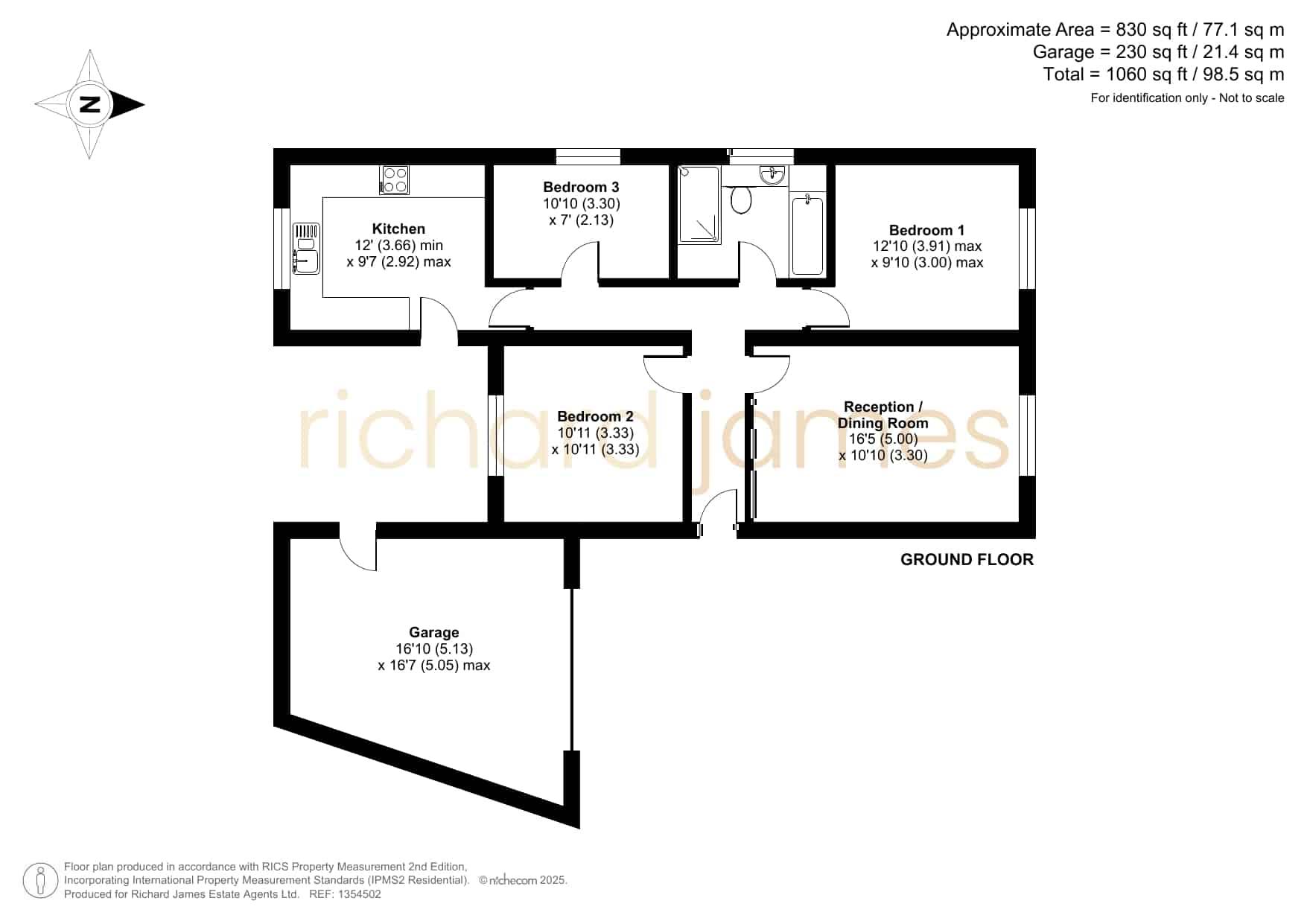 The home features three bedrooms, including two doubles and one single room, plus a family bathroom with separate shower and bath.
