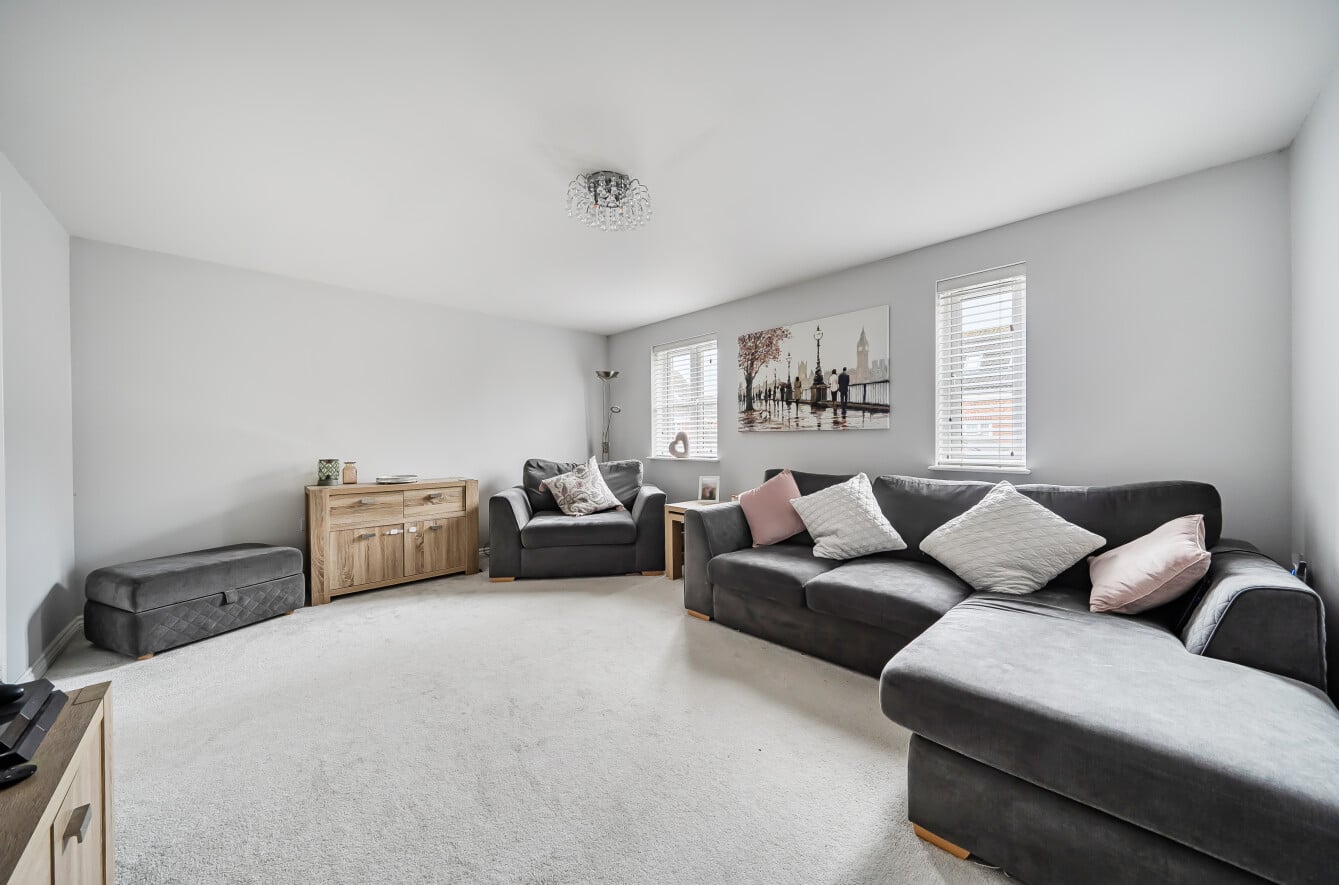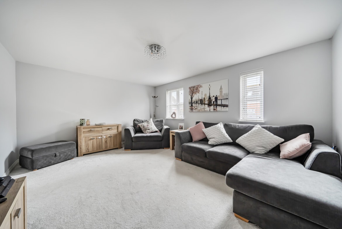 On the first floor, there is a modern family bathroom, a large, bright reception room ideal as a main living space, and a third bedroom, which would suit a child’s room, playroom, or home office.