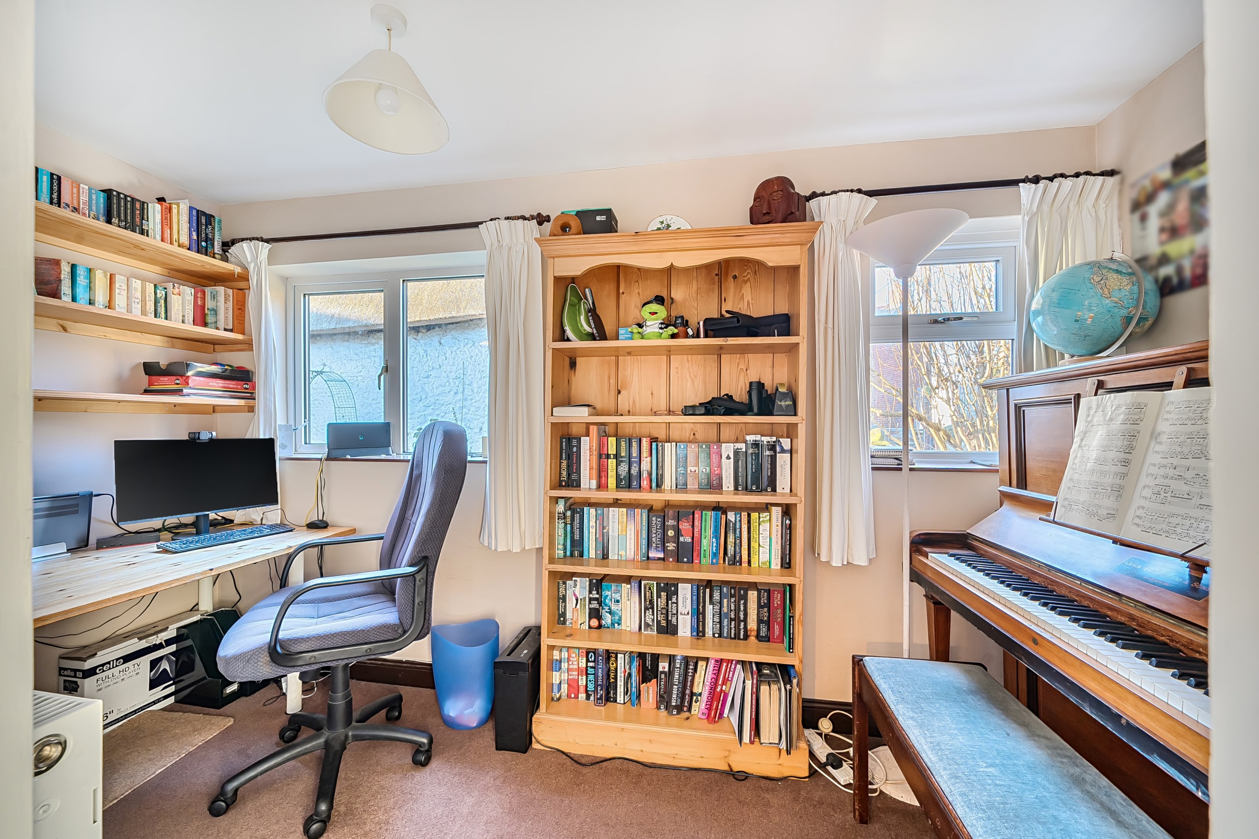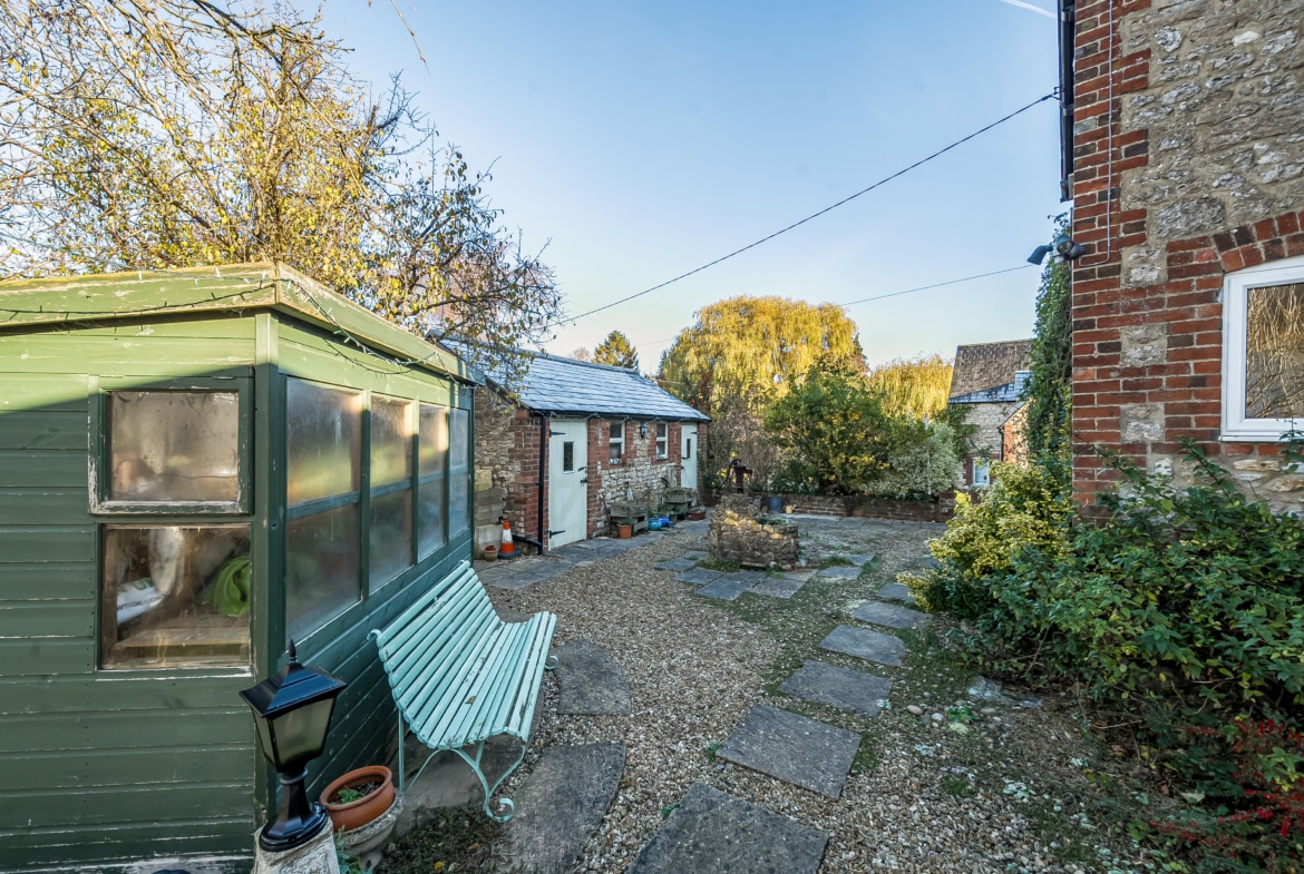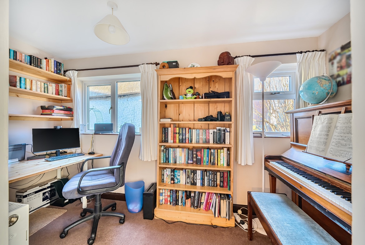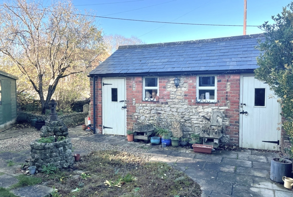 The generous ground-floor layout includes an entrance porch, two well-proportioned reception rooms, a versatile study, cloakroom, and a useful utility/storage area. Upstairs, there are four bedrooms and a family bathroom, offering comfortable and flexible accommodation for a range of lifestyles. A standout feature of this home is the excellent outbuilding positioned to the front of the property. Currently arranged as two workshops, it presents fantastic potential to be reimagined as a home office, gym, studio, or hobby space an impressive addition to the main residence. The property also benefits from driveway parking and mature, well-tended gardens that provide both privacy and charm.