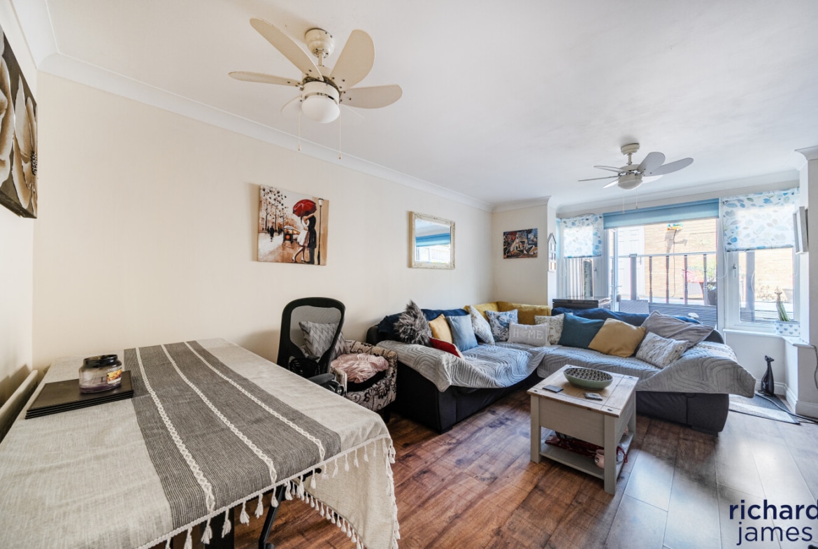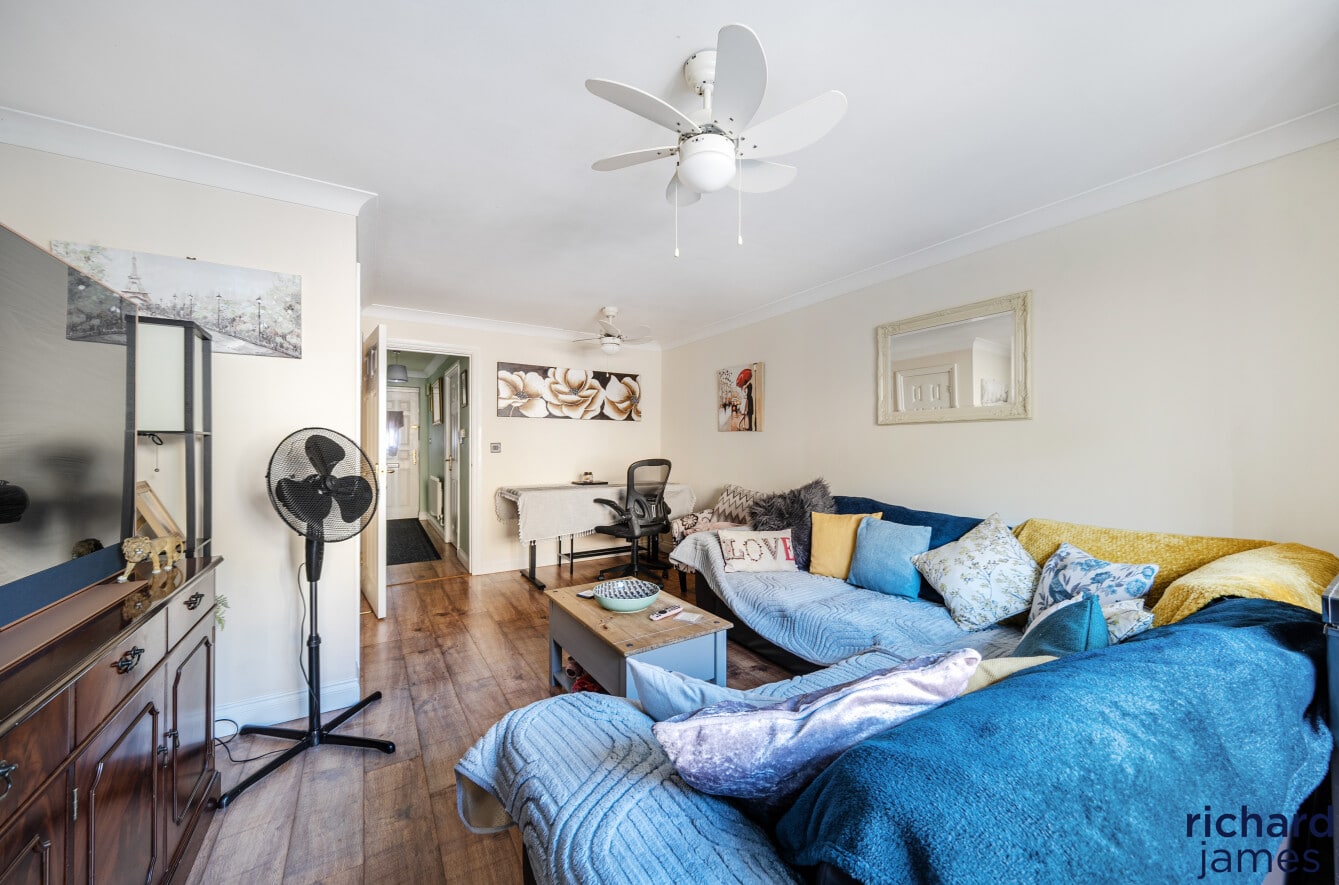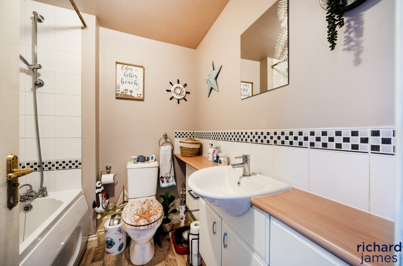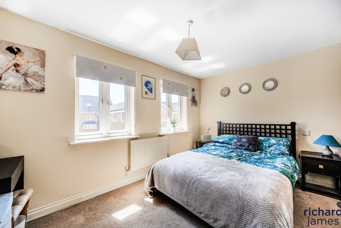 Nestled at the end of a cul-de-sac, this impressive three-storey townhouse offers an inviting blend of modern comfort and practicality. The ground floor is thoughtfully designed to maximise family living, boasting a generously sized living room where French doors elegantly lead to a well-tended garden, blurring the line between indoor and outdoor spaces. An ample number of storage cupboards complement a convenient downstairs WC, ensuring a clutter-free and organised living environment for you and your family.