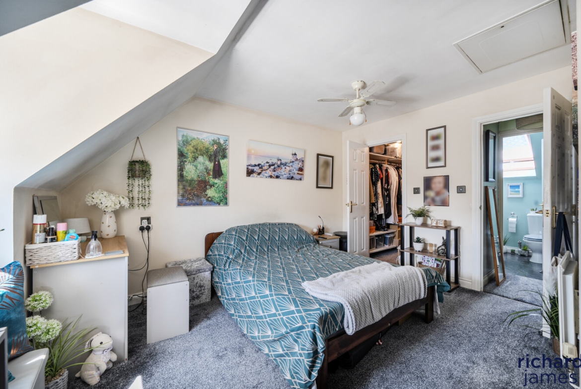 Ascending to the upper floors, the property unfolds three spacious double bedrooms, each characterised by its airy ambience. The pièce de résistance is the master suite, occupying an entire floor, which features not only an en suite bathroom for added privacy but also a coveted walk-in wardrobe, offering a touch of luxury rarely found in modern developments. With a harmonious balance of space and style, these sleeping quarters are ideal for families or those seeking extra room for guests or a home office.