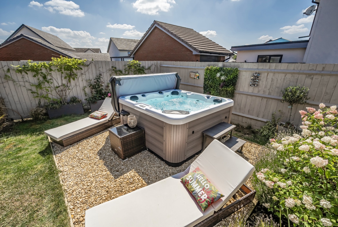 Outside, the west facing rear garden has been landscaped to a high standard creating the prefect hosting space! A recently added hot tub offers an extra touch of luxury and there is a decked area by the doors with a pergola over, creating a lovely indoor/ outdoor space for all weathers.