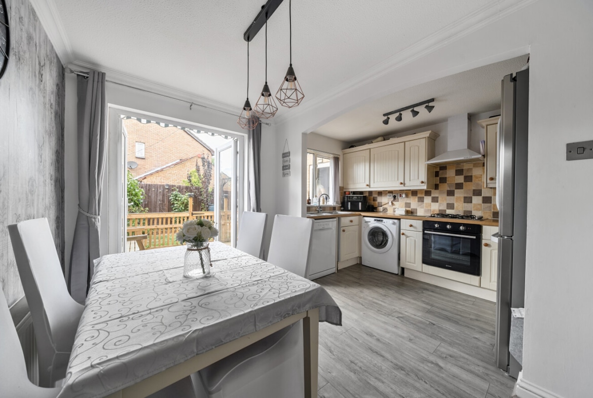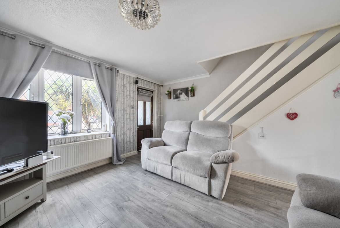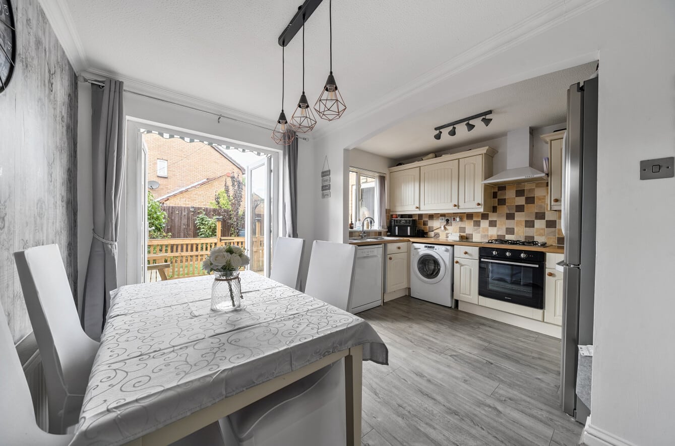 This attractive home is perfect for first-time buyers, offering modern décor, generous living space and excellent convenience. As you step through the entrance porch, you are welcomed into a large lounge to the front of the property, a bright and comfortable space for relaxing. To the rear, the modern kitchen and dining area benefit from doors opening onto the garden, filling the room with light and creating a perfect setting for both family life and entertaining.