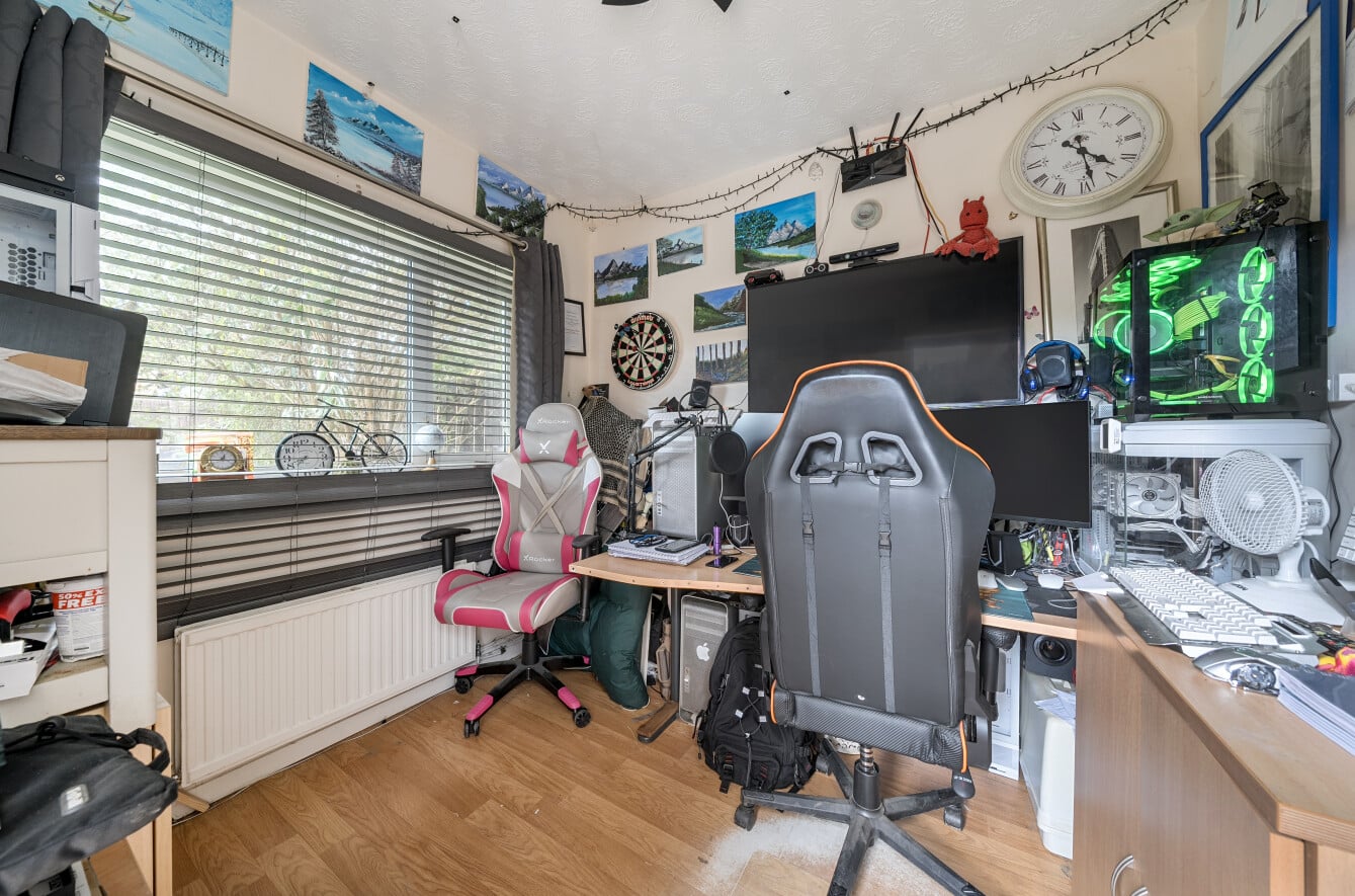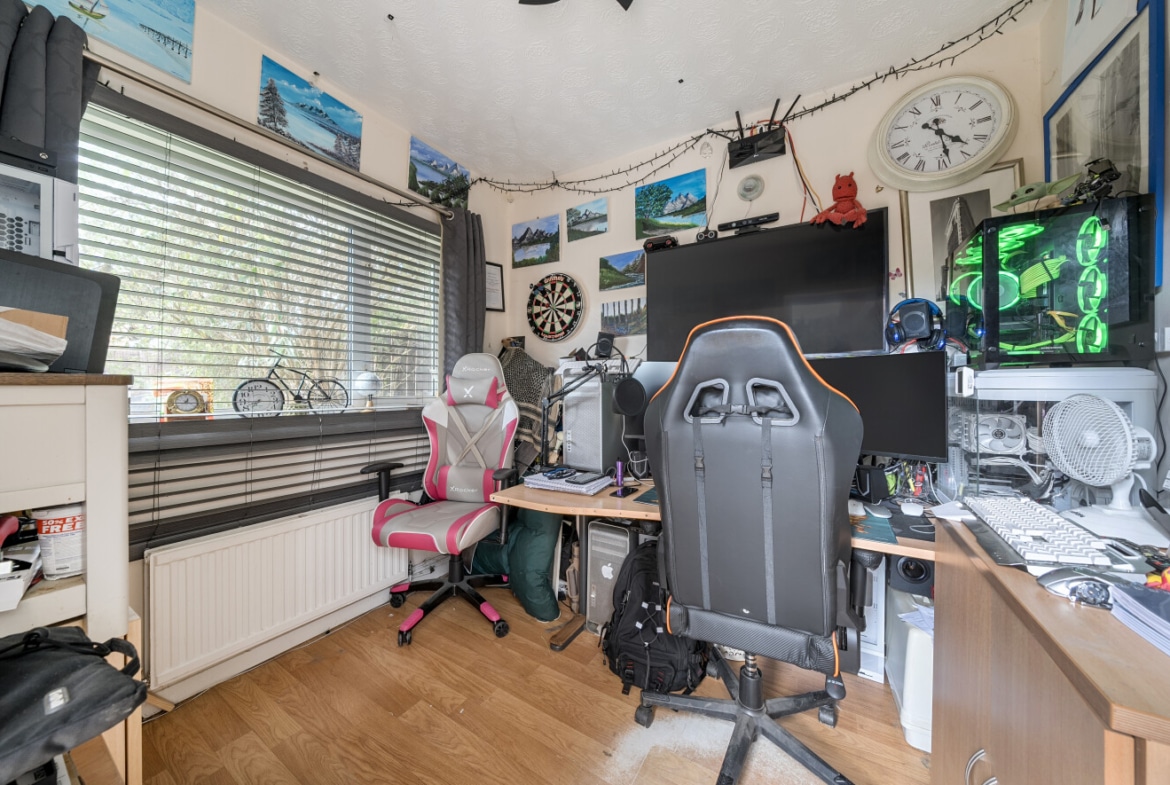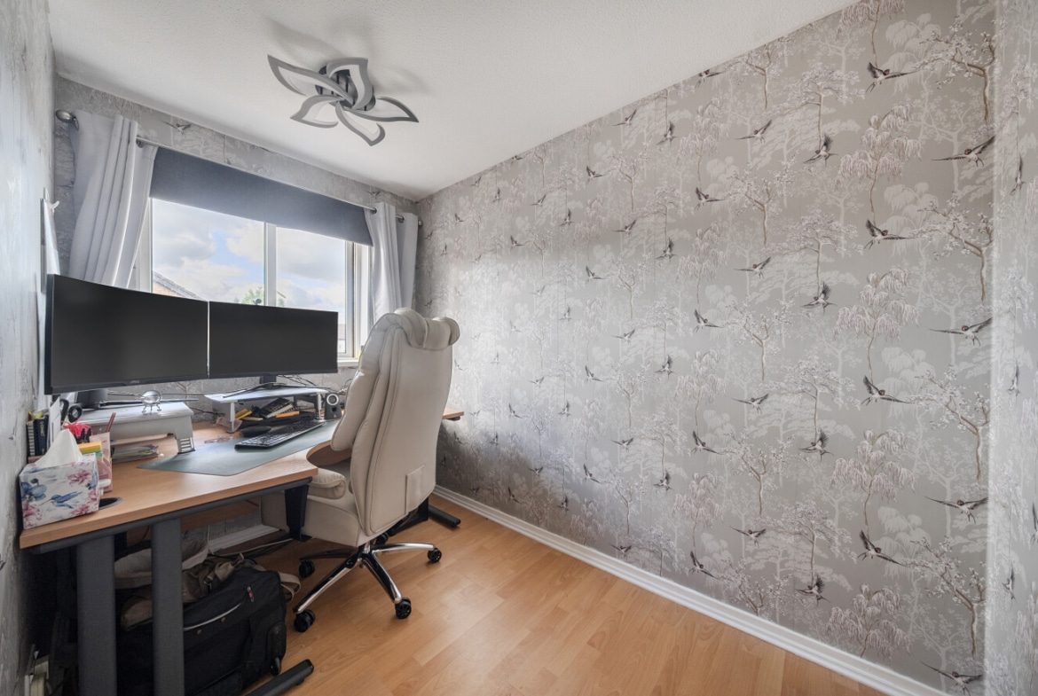 Upstairs, the property provides three bedrooms along with a stylish family bathroom. The home is ideal for those who work from home thanks to the garage, which has been thoughtfully adapted with an office space behind.