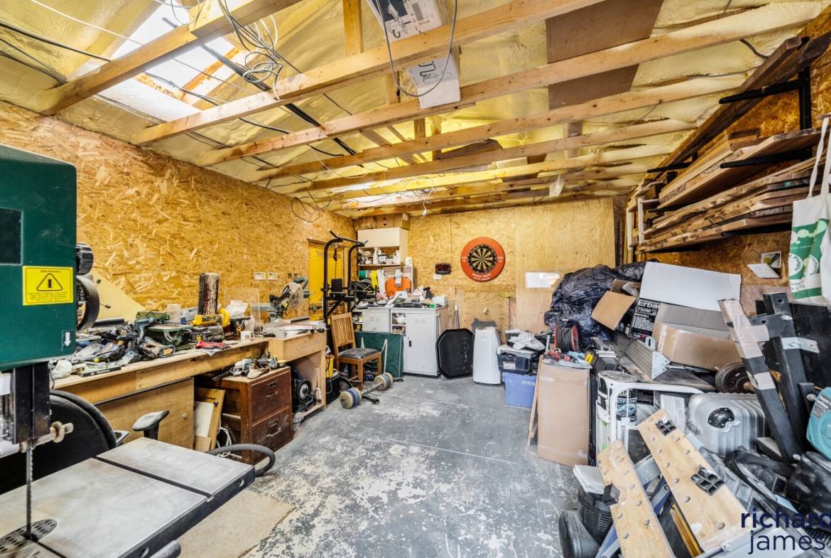 Outside, the property benefits from generous driveway parking for several vehicles, a tandem garage, and a large workshop with power—perfect for hobbies, storage, or a home-based business. The enclosed rear garden is ideal for keen gardeners, with plenty of space for planting and outdoor dining.