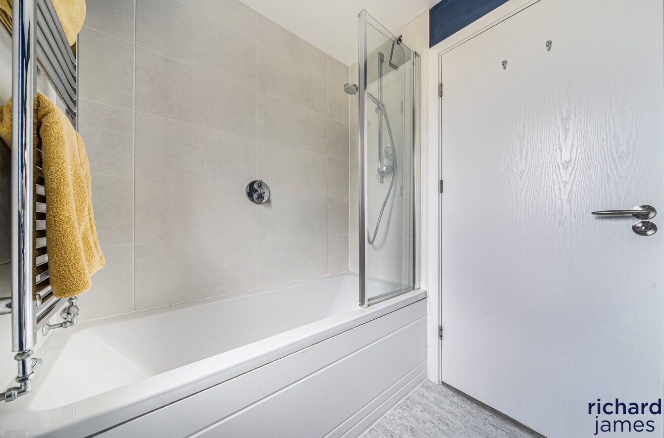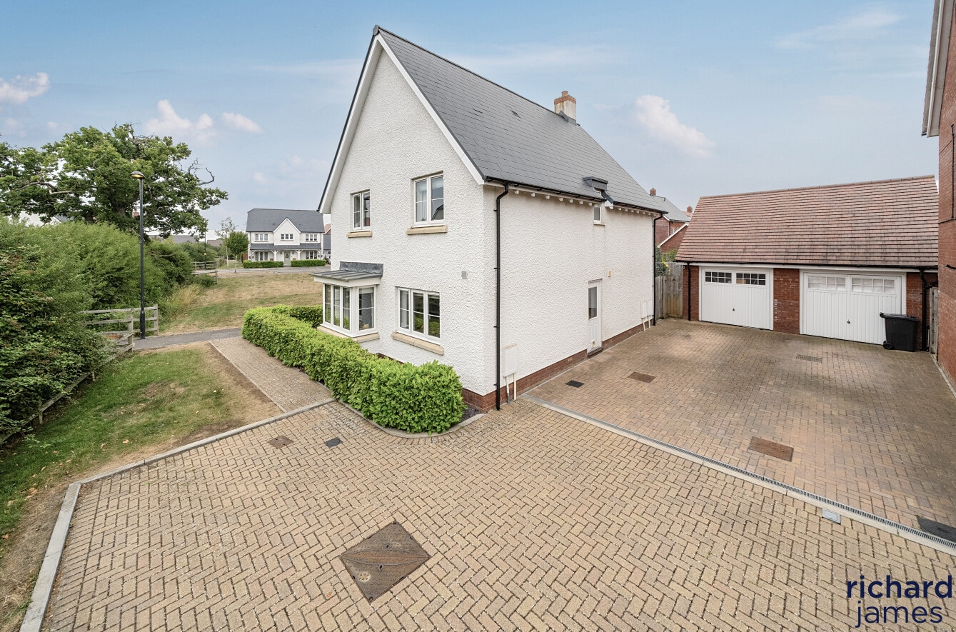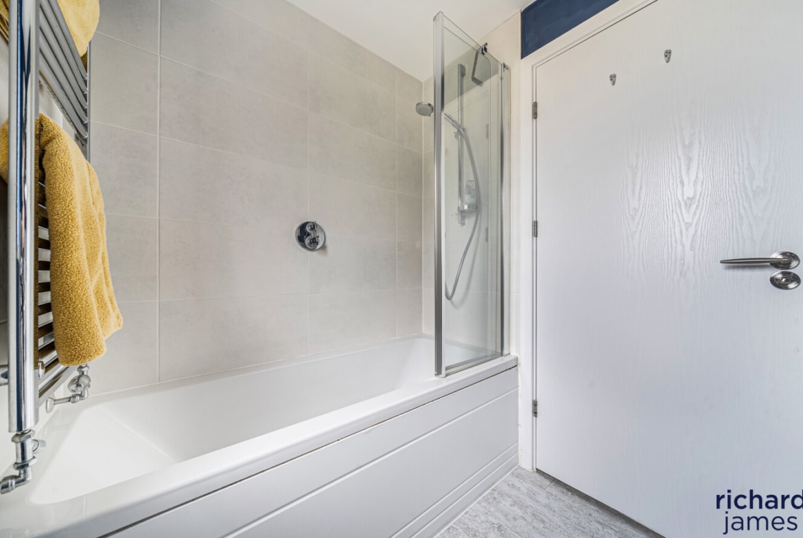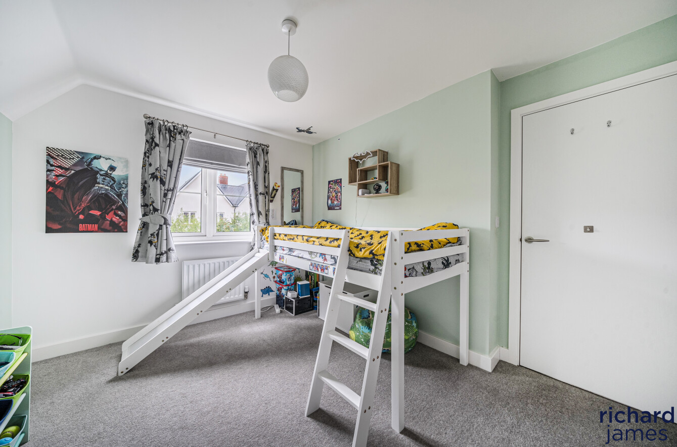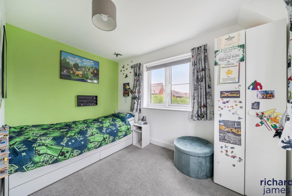 The first floor hosts four well-balanced bedrooms, each offering excellent versatility for family life, guest rooms, or home working. The principal suite benefits from fitted wardrobes and a sleek ensuite shower room, while the remaining bedrooms are served by a modern family bathroom — complete with a full three-piece suite finished to a high standard.