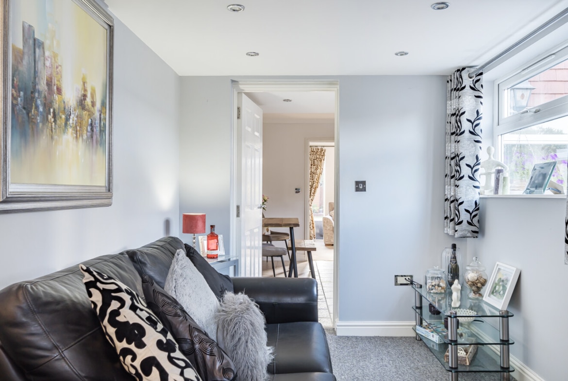 The property begins with a private driveway, offering off-road parking right at your doorstep. As you enter, you’re welcomed by a cosy snug area – the perfect spot to relax and unwind.